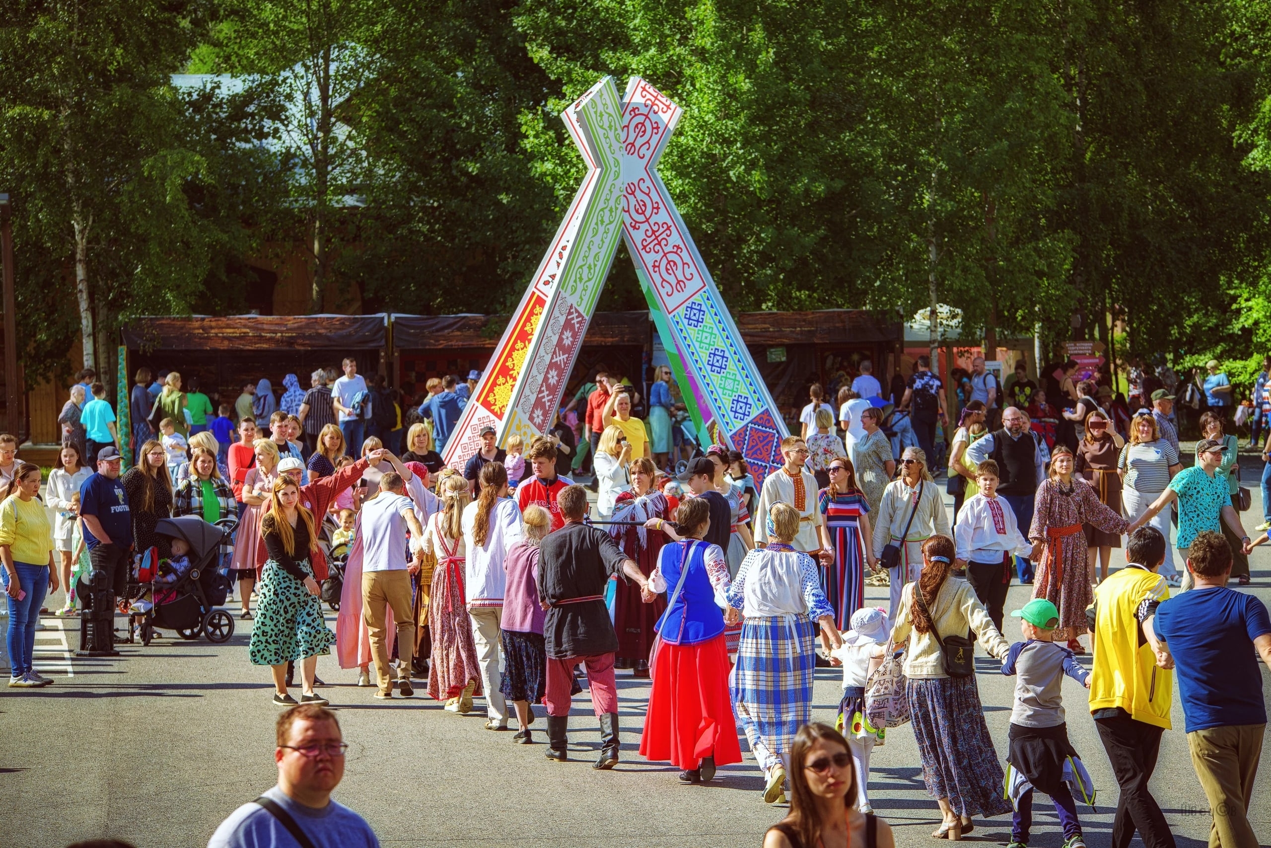 Все желающие смогли поучаствовать в народных гуляниях, хороводах и молодецких играх, посетить ярмарку «Семейный выходной».