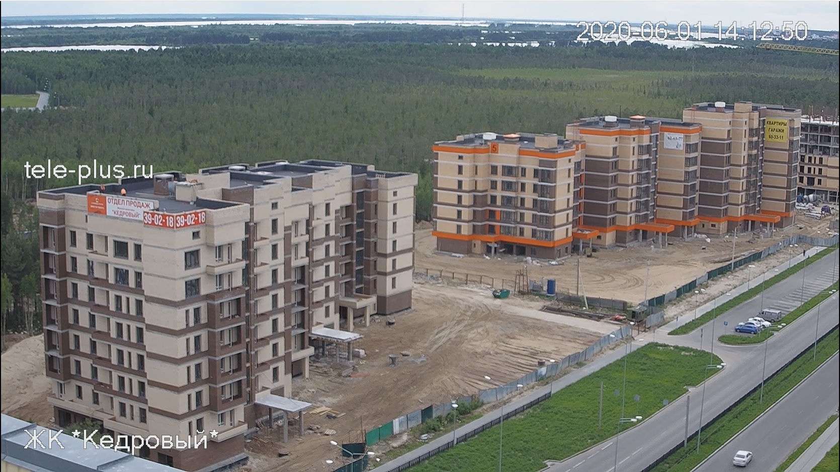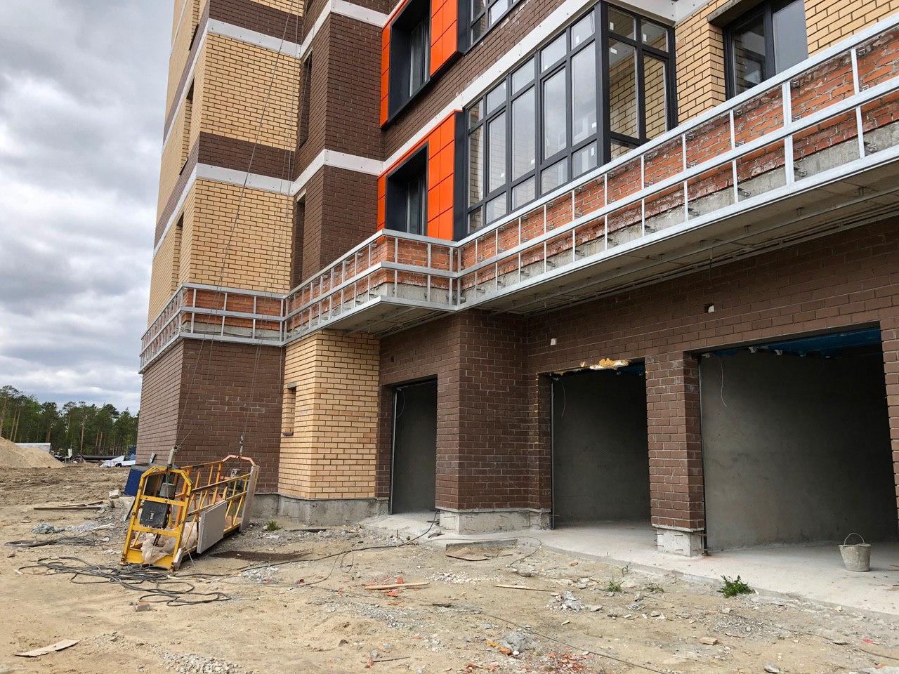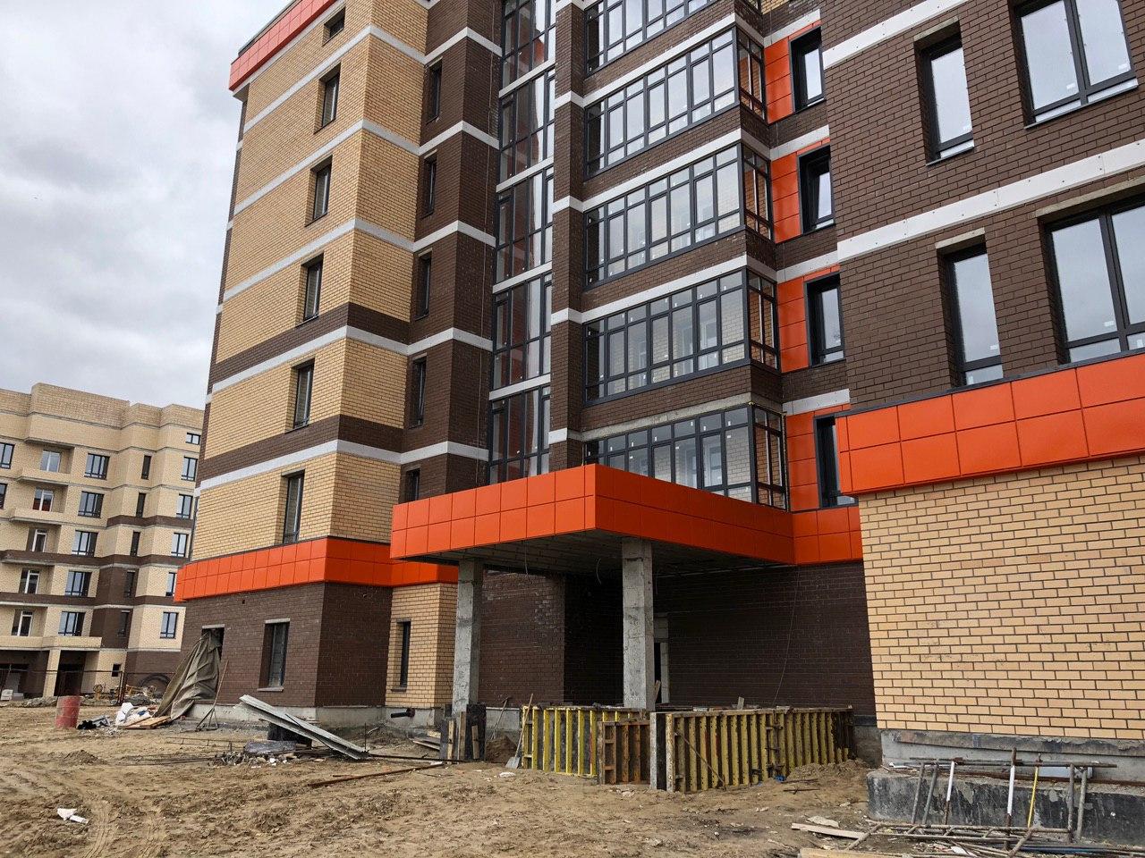 Внутри помещений возведены перегородки, ведется работа по оштукатуриванию стен мест общего пользования, укладка плитки на пол в МОП первой, второй, третьей секции, установка дверей, покраска МОП первой, второй, третьей секции подготовка к благоустройству территории, монтаж внутреннего электроснабжения, монтаж внутреннего отопления. Завершаются работы по остеклению фасада. Ведутся работы по монтажу фасада.