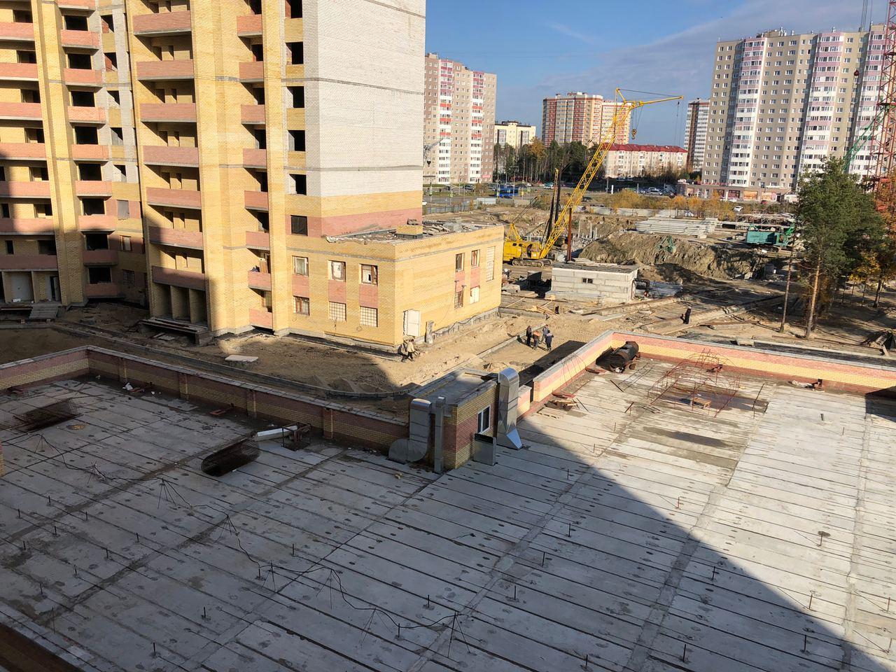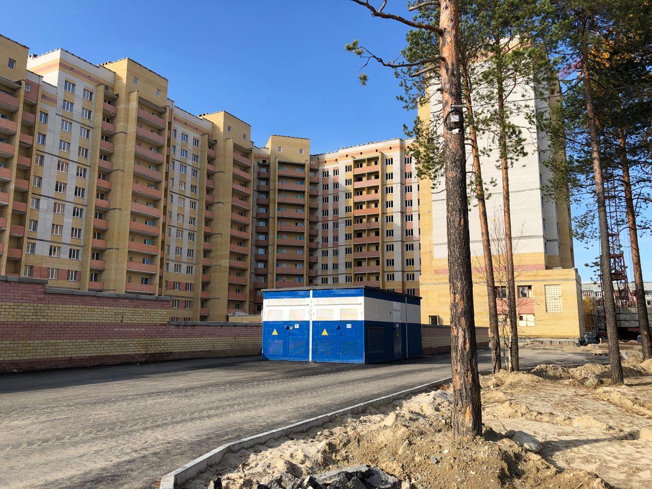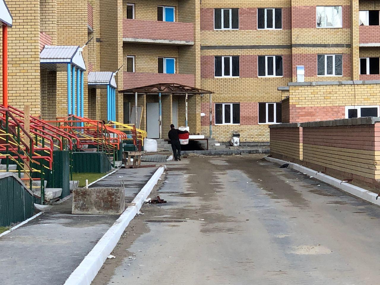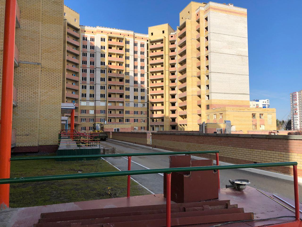 На строительной площадке первых четырех подъездов находятся ориентировочно 7-10 рабочих, ведутся работы по благоустройству территории (установка бордюров, подготовка под асфальтирование проезда).
