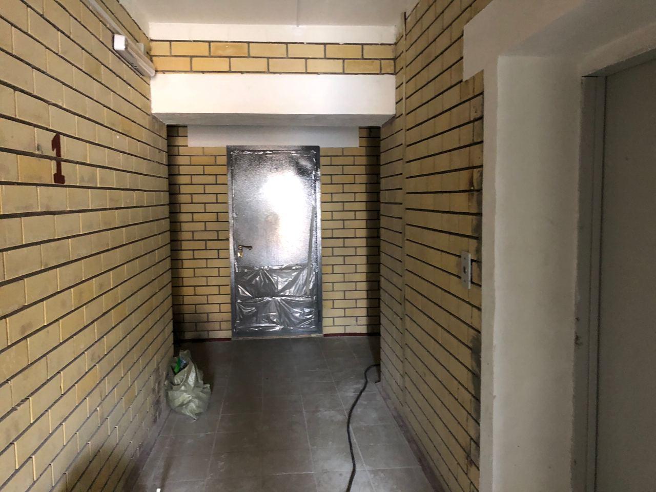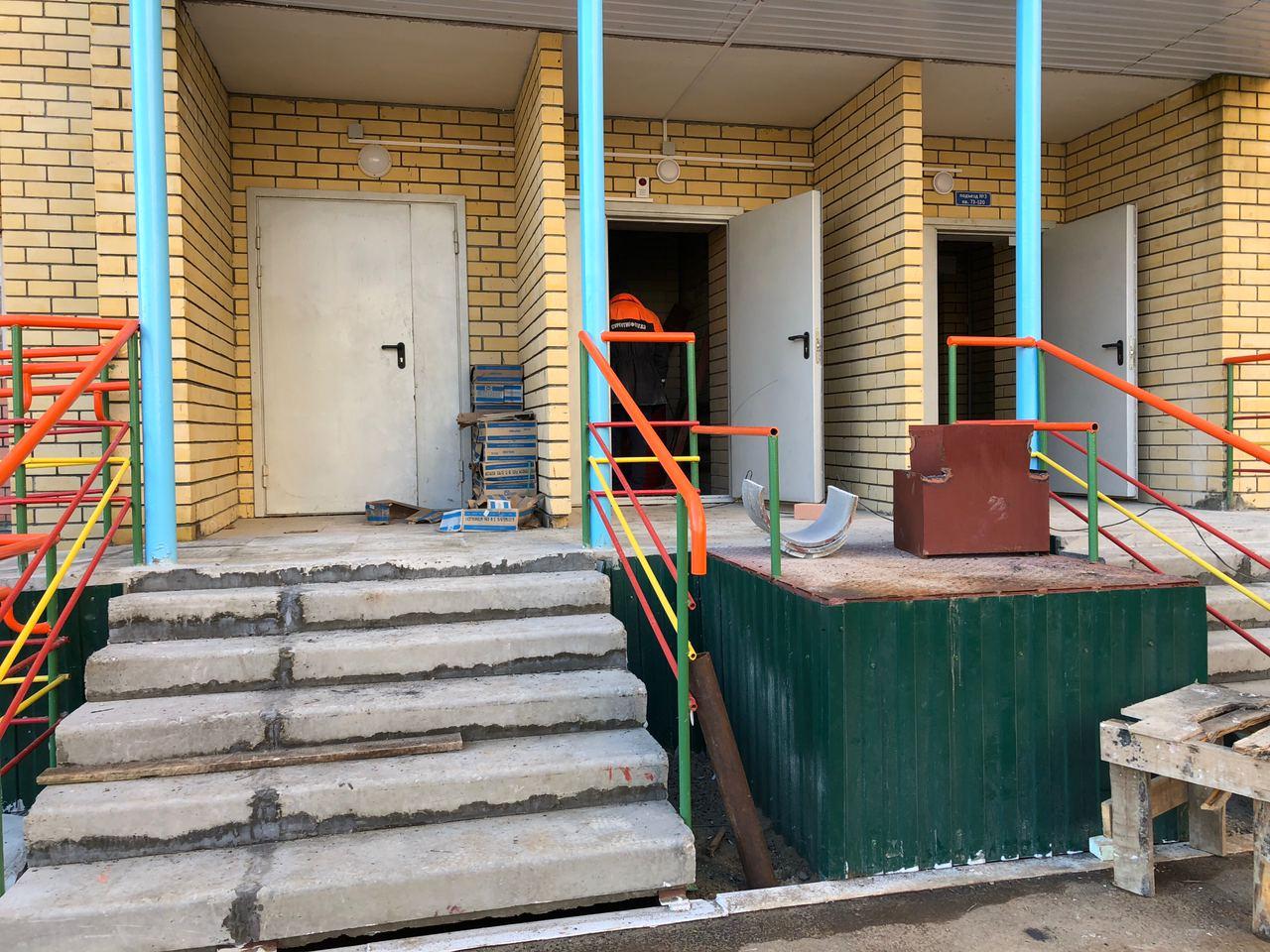 В первом подъезде работы не ведутся, дверь открыта. Входные двери в квартиры закрыты на ключ, осмотр не представляется возможным. Производятся работы по отделке крыльца.