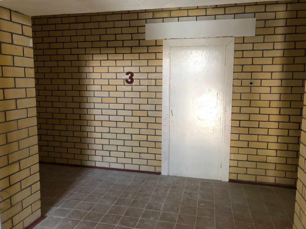В третьем подъезде разводка отопления не подключена, двери открыты, работы не ведутся.