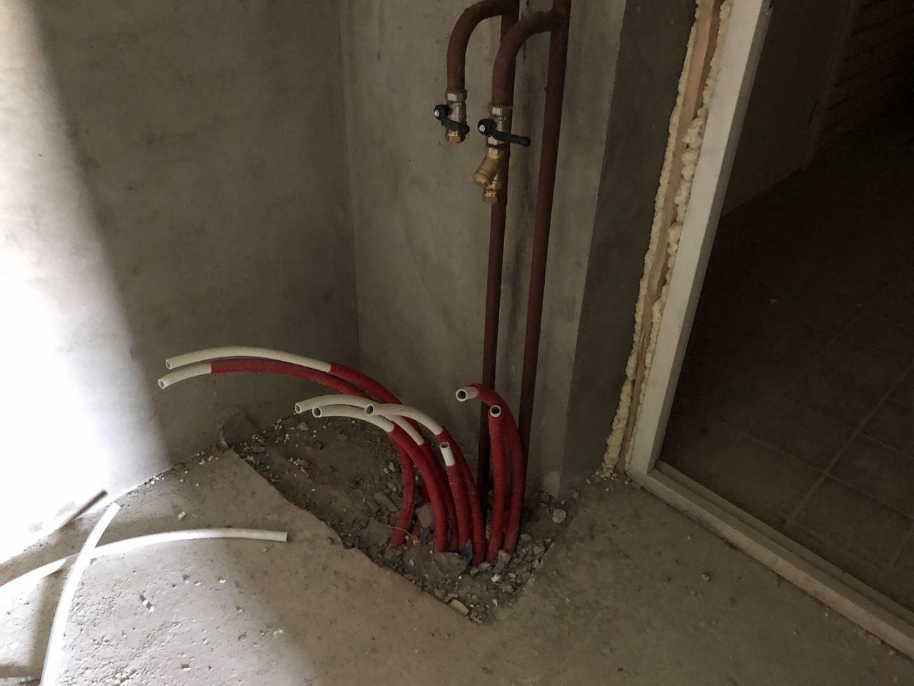 В четвертом подъезде разводка отопления не подключена, двери открыты, работы не ведутся.