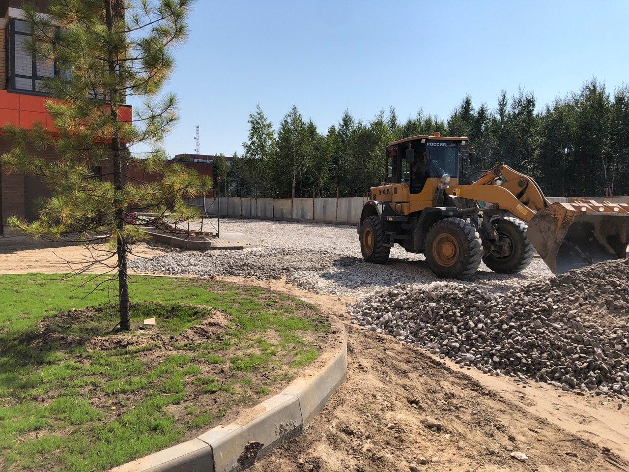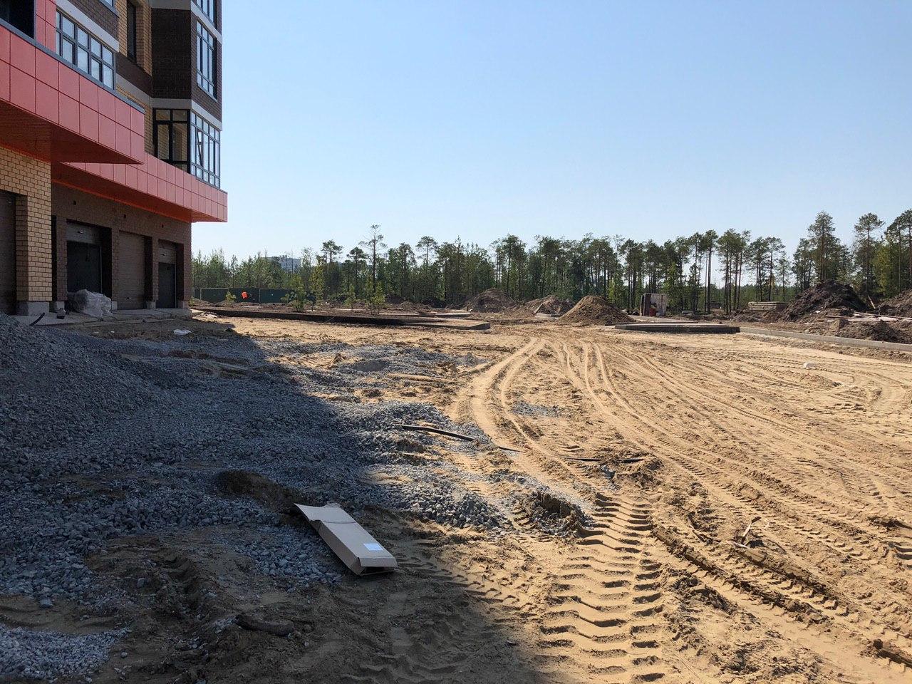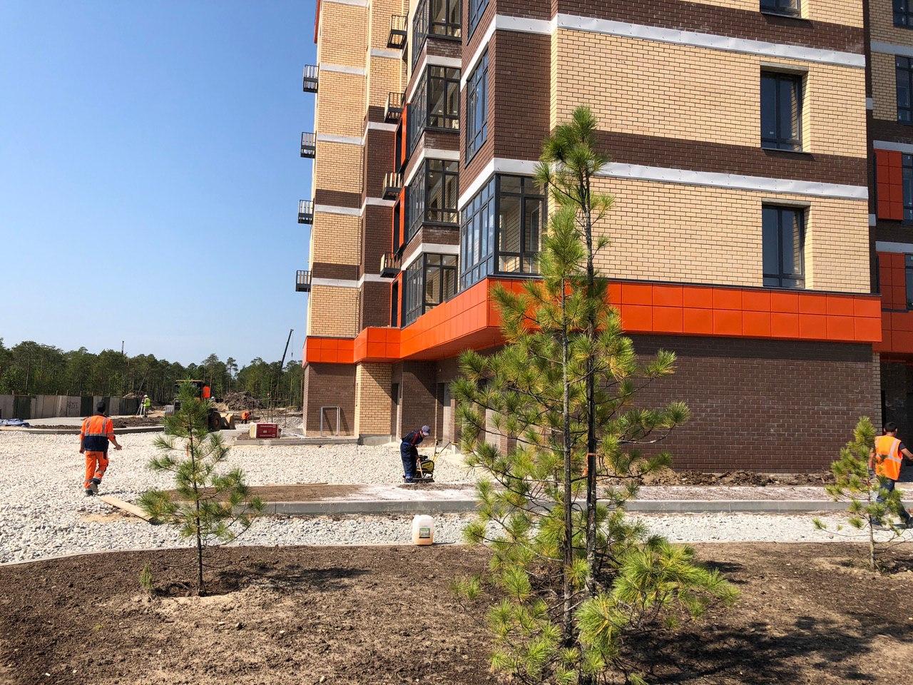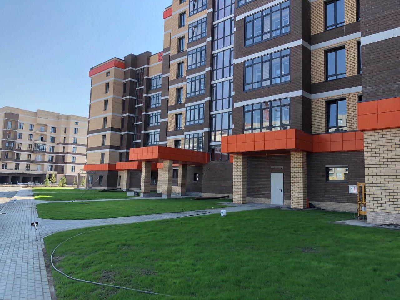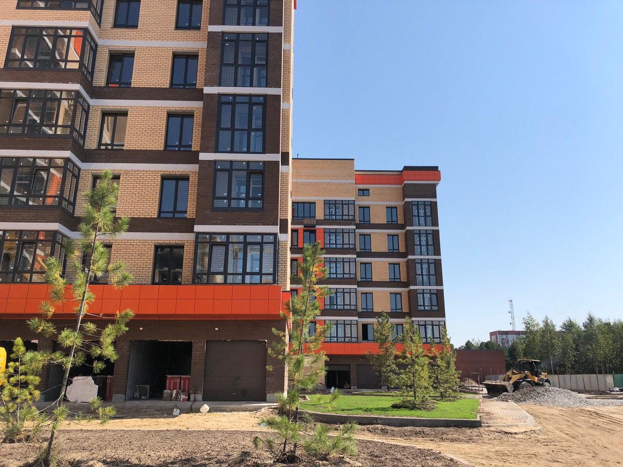 Ведутся работы по отделке мест общего пользования, работы по монтажу фасада, установка коробов под кондиционеры, работы по благоустройству территории.