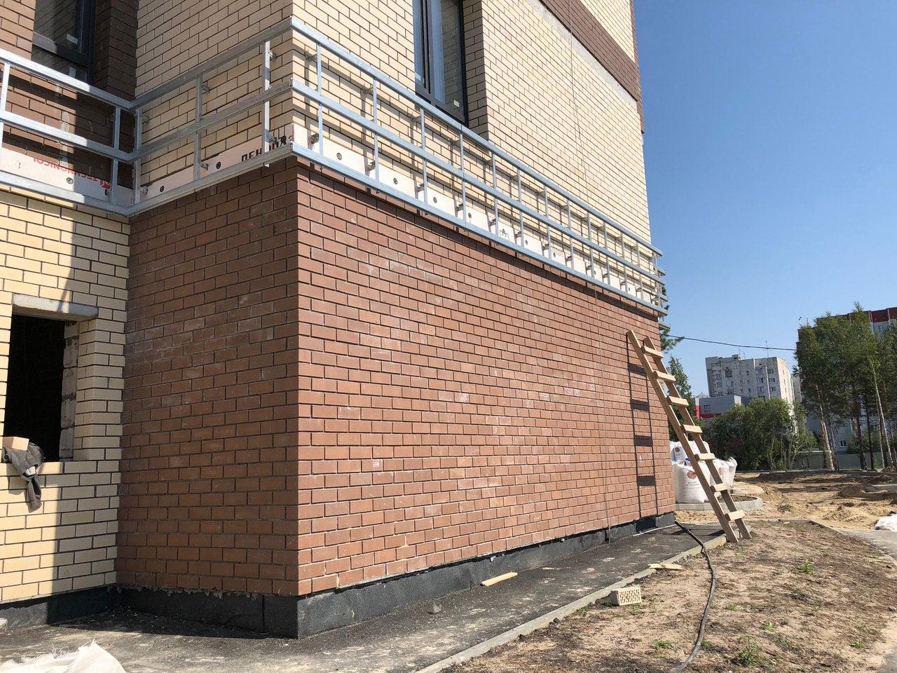 Производятся работы по работы по монтажу фасада, благоустройству территории.