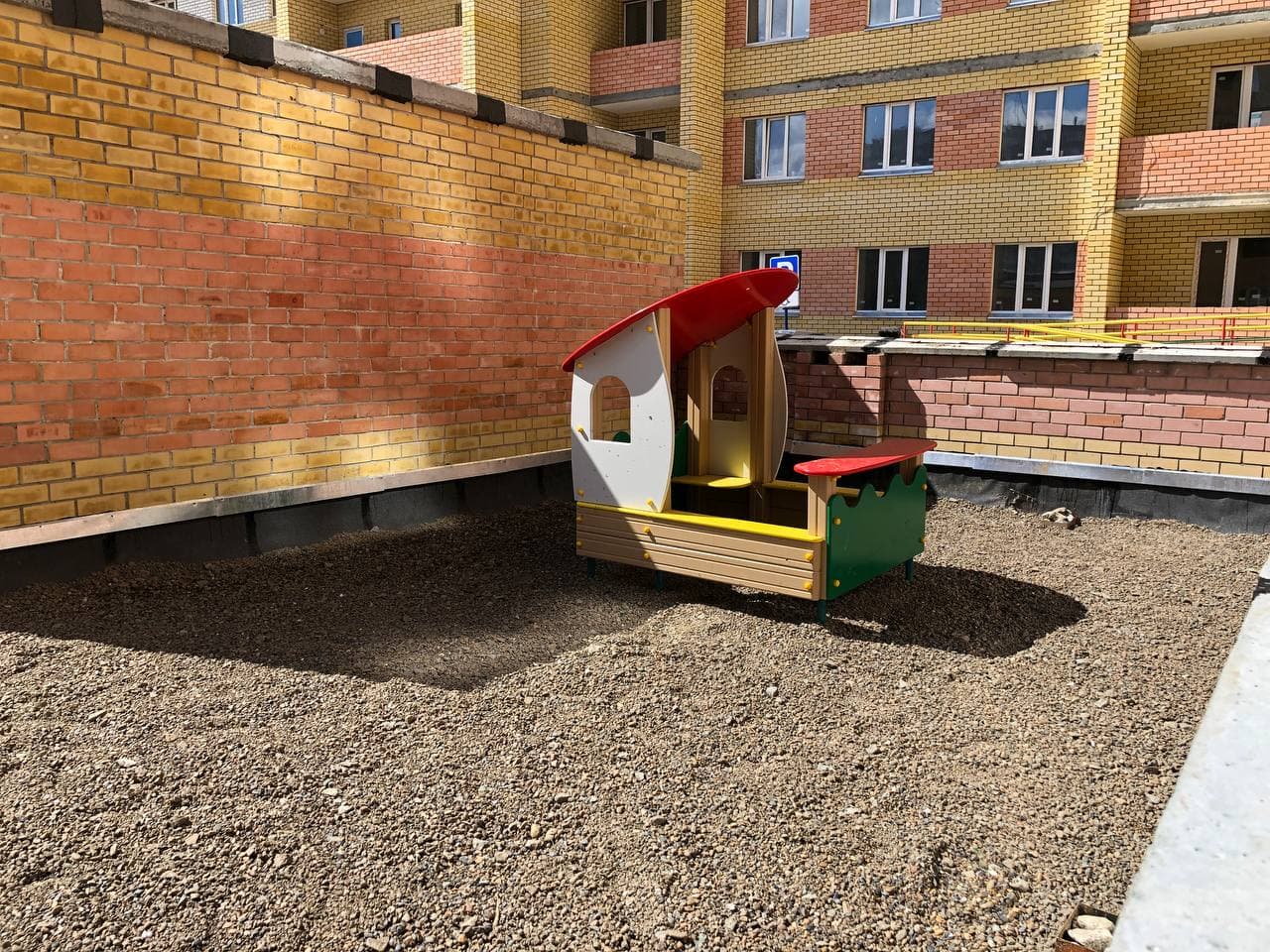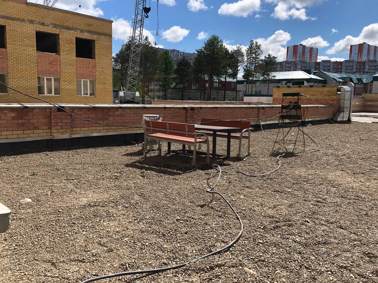 На придомовой территории идет установка МАФ, благоустройство территории на крыше паркинга.