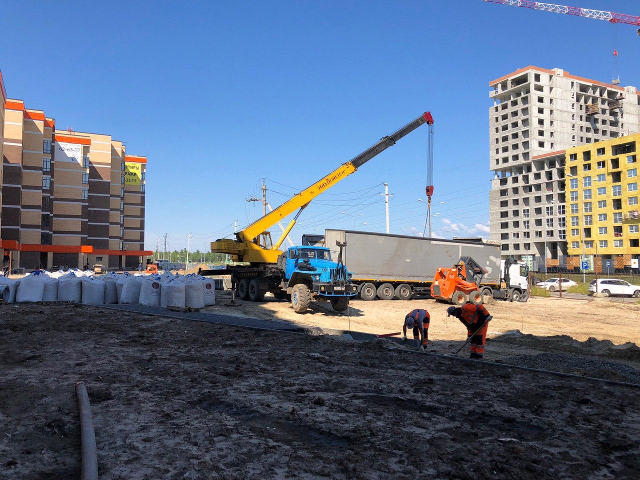 Ведутся работы по благоустройству территории, асфальтирование тротуаров.