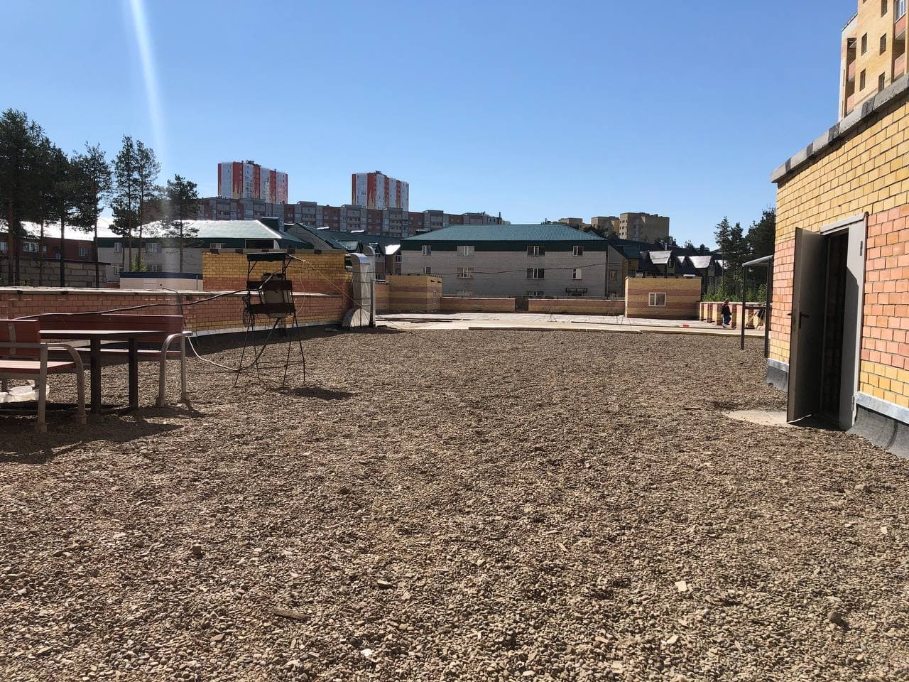 На придомовой территории идет установка МАФ, благоустройство территории на крыше паркинга, заливка бетонной стяжки.