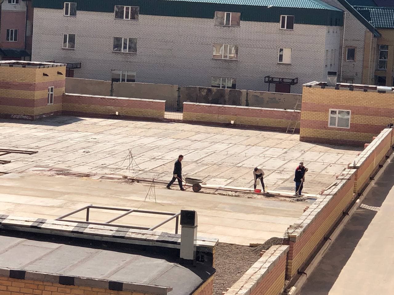 На строительной площадке находятся ориентировочно 15-20 рабочих.