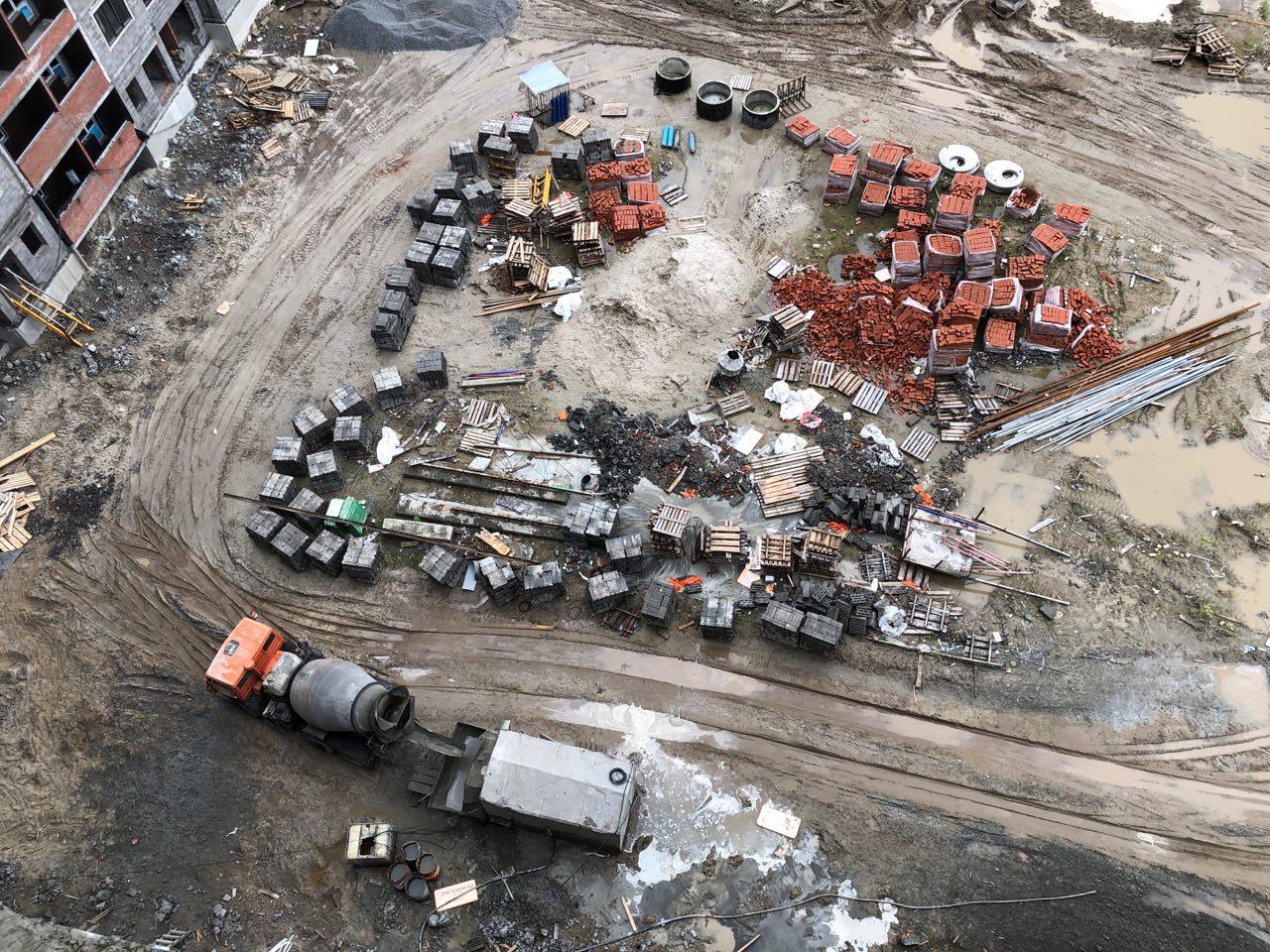 4 человека производят кладку перегородок на 7 и 8 этажах в 5 подъезде.