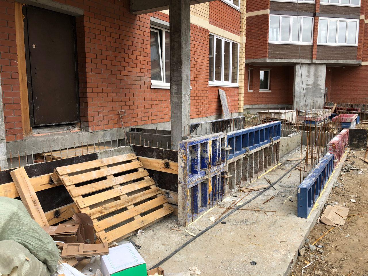 В 1-3 секциях работы не ведутся. Идет работа по устройству крылец 2-3 секции.