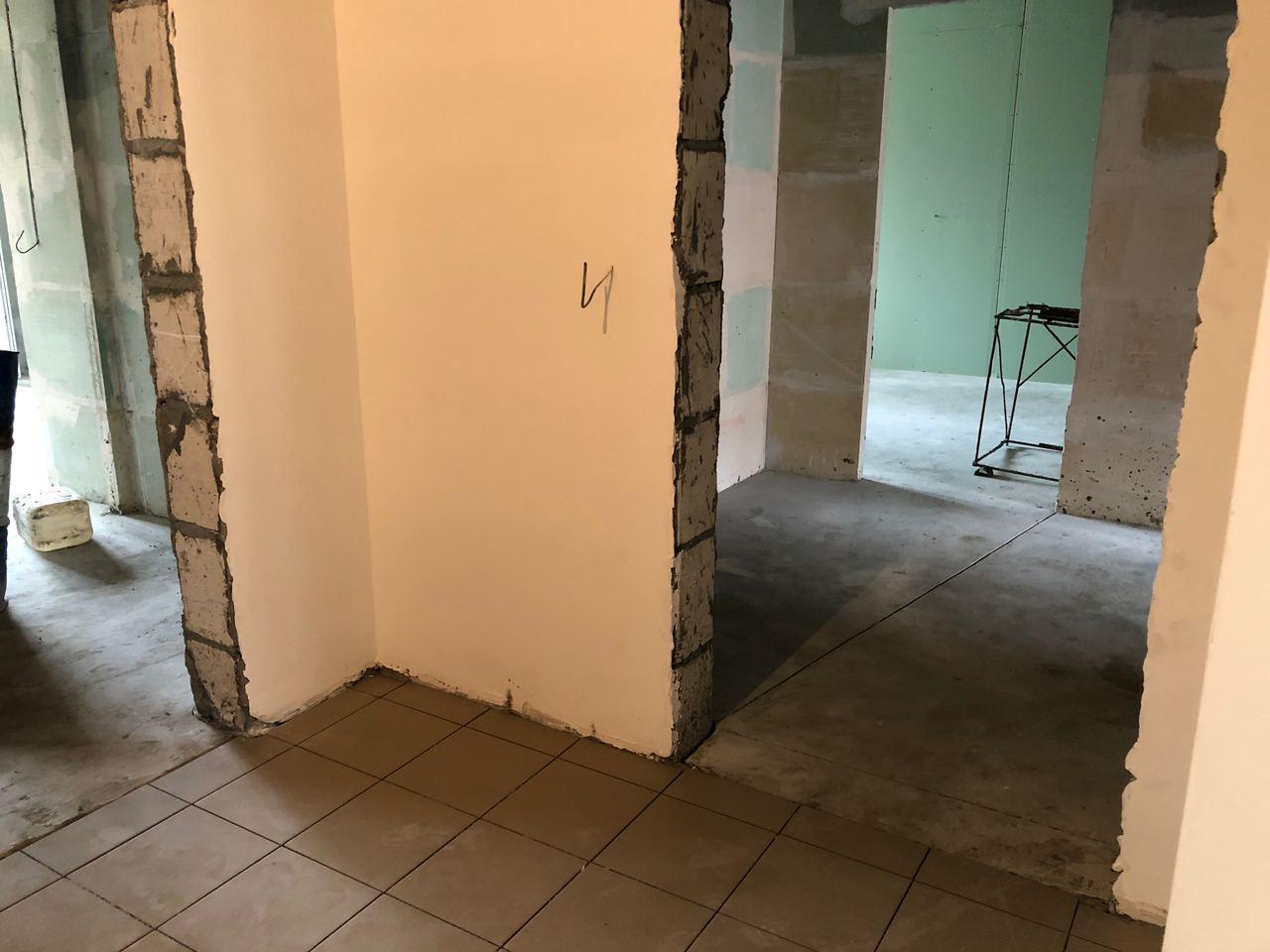 В 4 секции ведется укладка плитки, монтаж потолков.