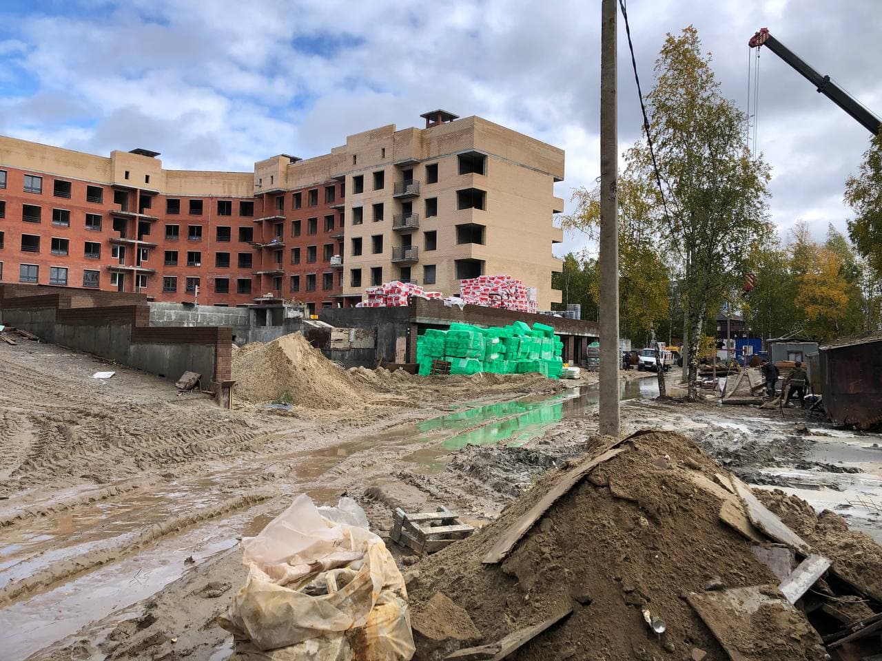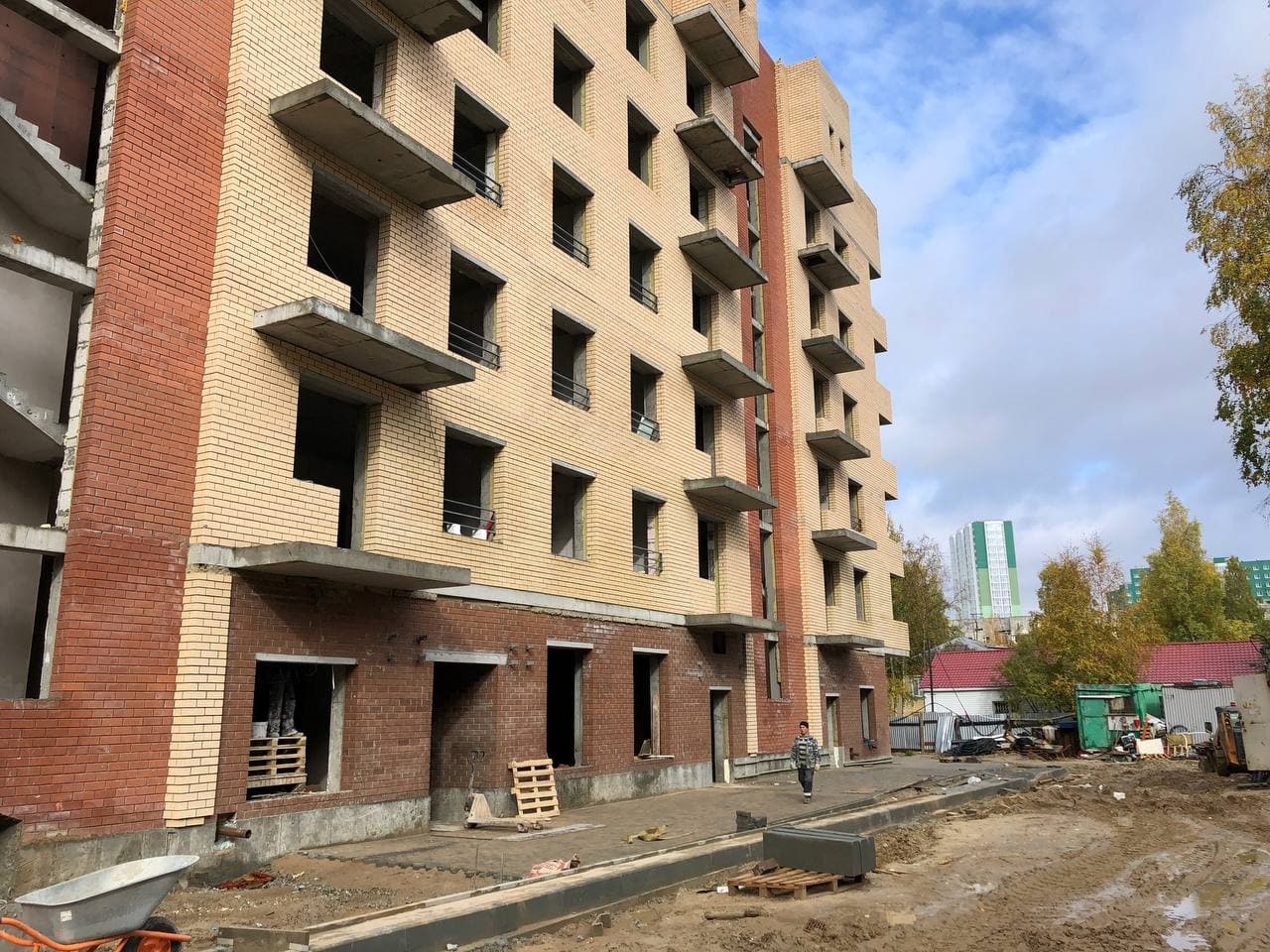 Ведется устройство перегородок из пазогребневой плиты. Монтаж внутренней электропроводки. Устройство монолитных входных групп и плиты паркинга. Подготовка песчаного основания под полы первого этажа. Ведутся работы по устройству полусухой стяжки на верхних этажах (чердак) Гидроизоляция паркинга. Штукатурка колонн в паркинге, штукатурка МОП. Монтаж воздуховодов вентиляции. Монтаж оконных конструкций. Монтаж защитных решеток на окна. Ведутся кровельные и фасадные работы. Монтаж стояков канализации и ХГВС. Установка радиаторов отопления. Проводятся работы по устройству кровельного пирога. Ведутся работы по реконструкции наружных сетей. Монтаж слаботочных сетей. Общестроительные работы. Ведутся работы по облицовке кирпичом стен монолитного паркинга и гаражей.