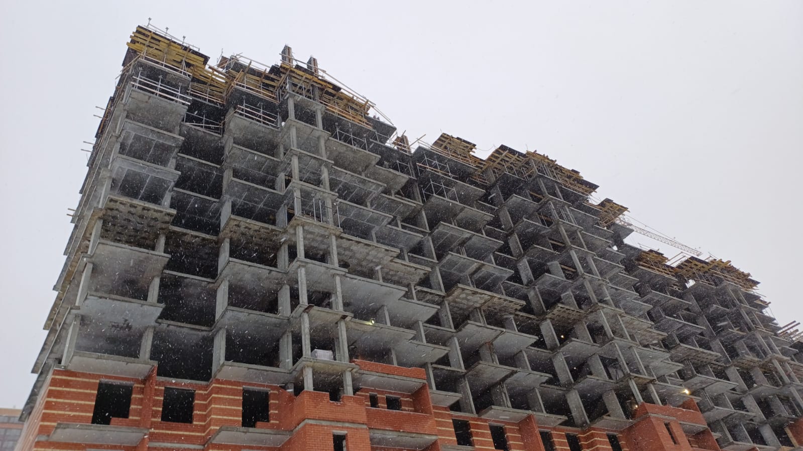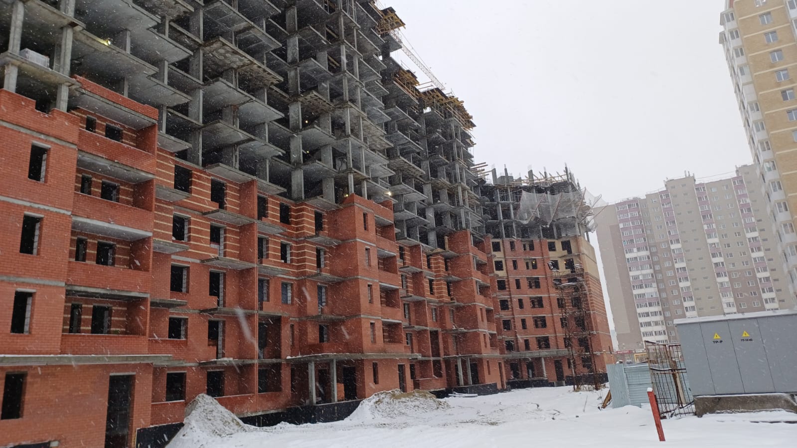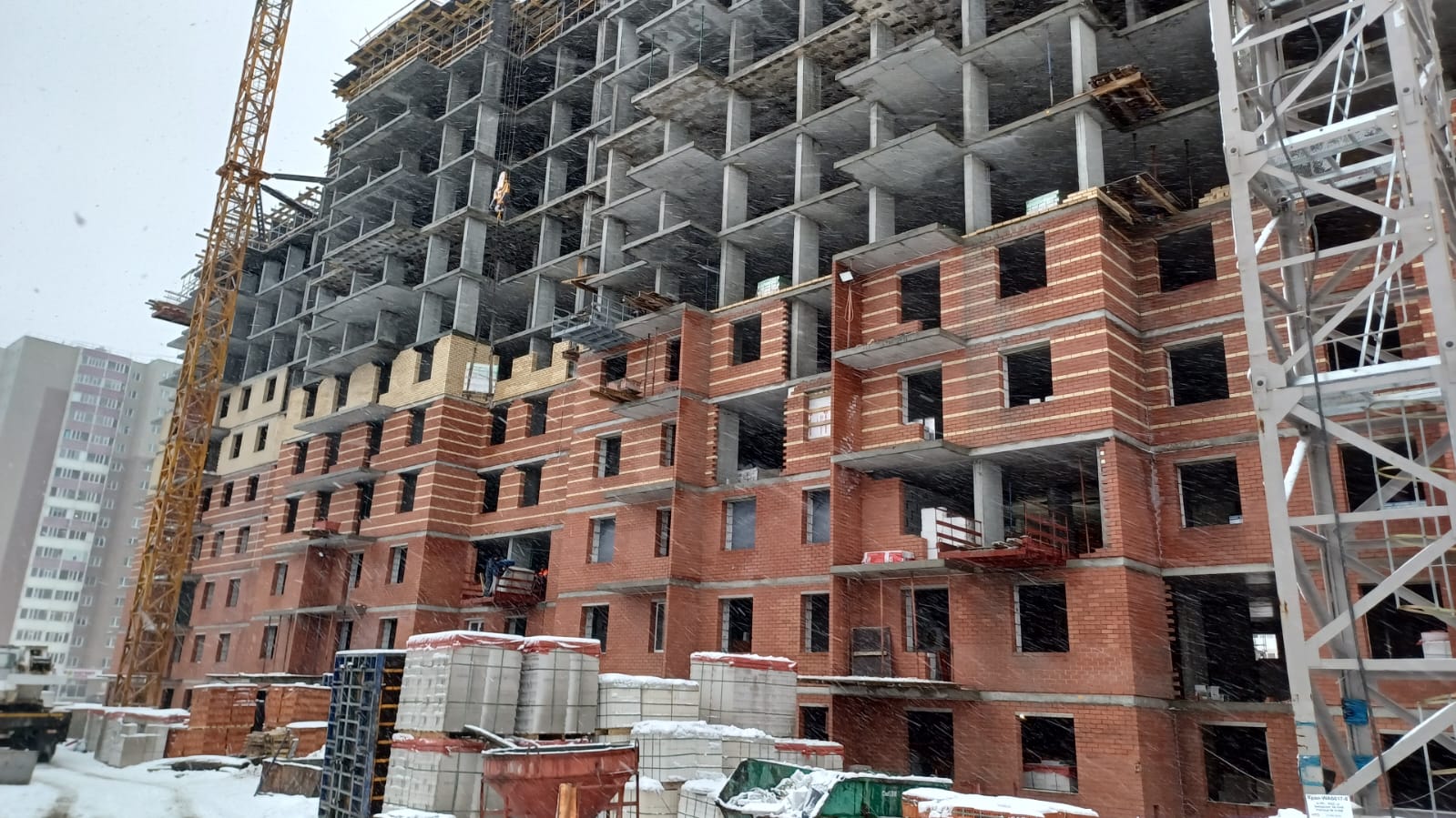 На строительной площадке ведутся строительно-монтажные работы.