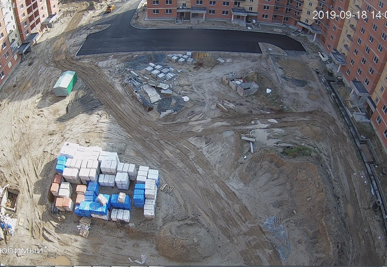 5 человек ведут работы по благоустройству прилегающей территории. Установка бордюров. Ведутся работы по отсыпке гравием тротуарных дорожек. Произведено асфальтирование проезда внутри двора.