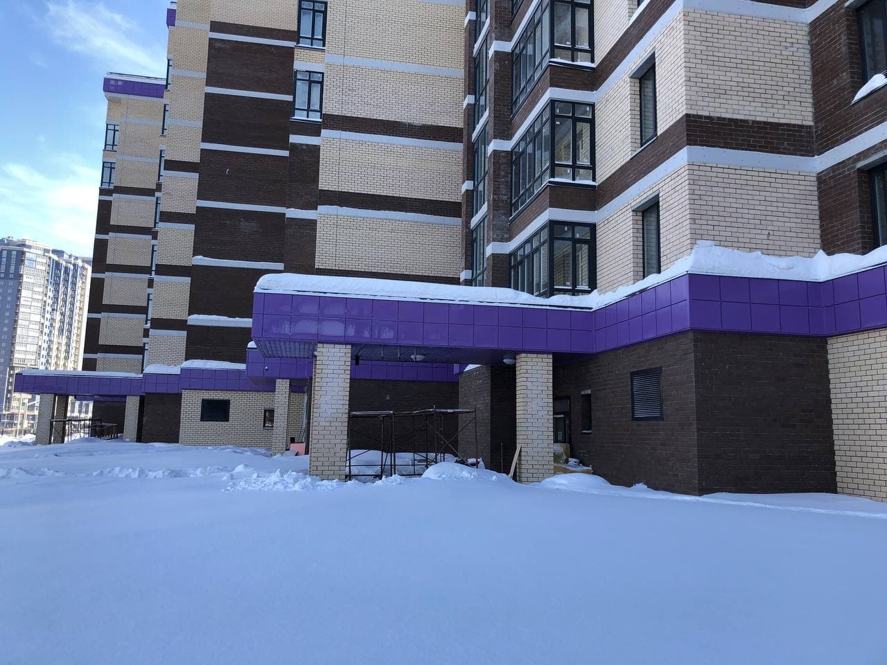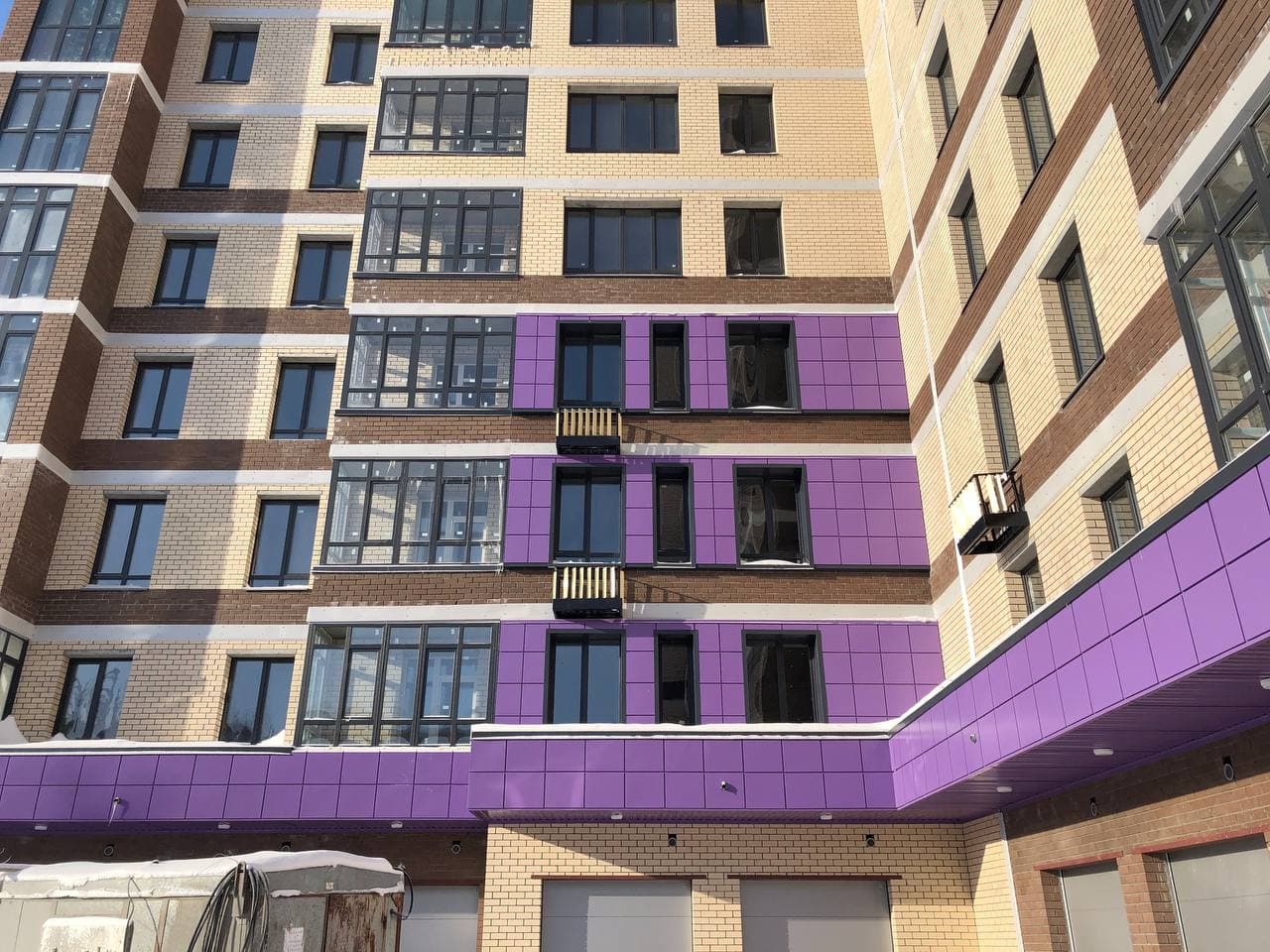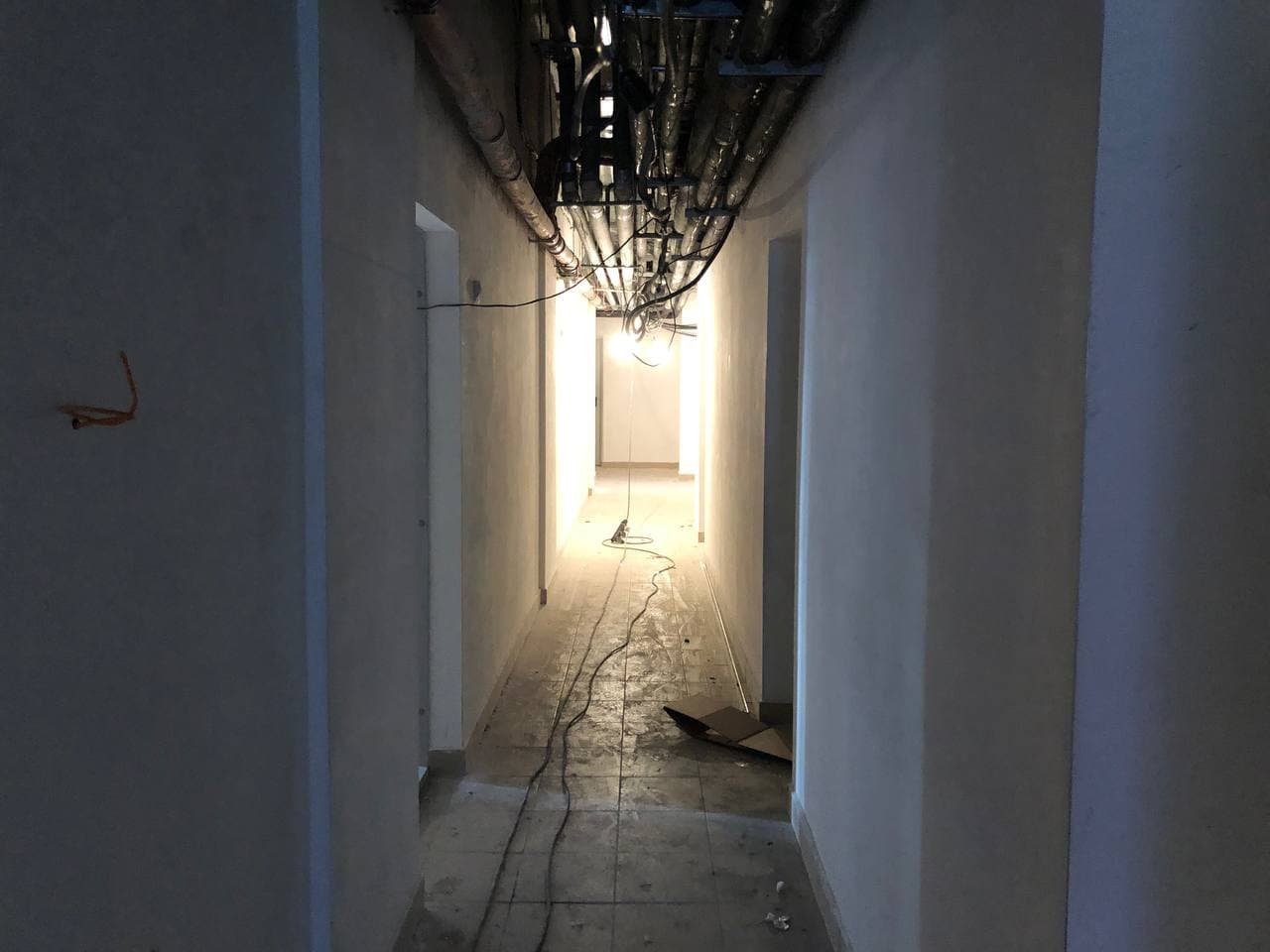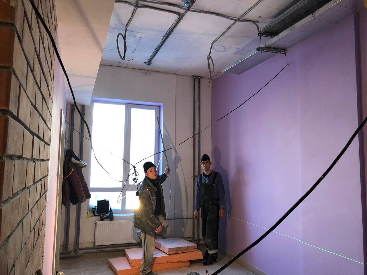 Ведутся работы по отделке мест общего пользования (финишная отделка стен, монтаж потолков), проводятся пуско-наладочные лифтового оборудования. На первых этажах проводятся работы по утеплению гаражей, отделке коридоров. Монтаж гаражных электрощитов. Ведутся работы по монтажу корзин для кондиционеров. В квартирах проводятся работы по разводке систем водоснабжения (для двух санузлов).