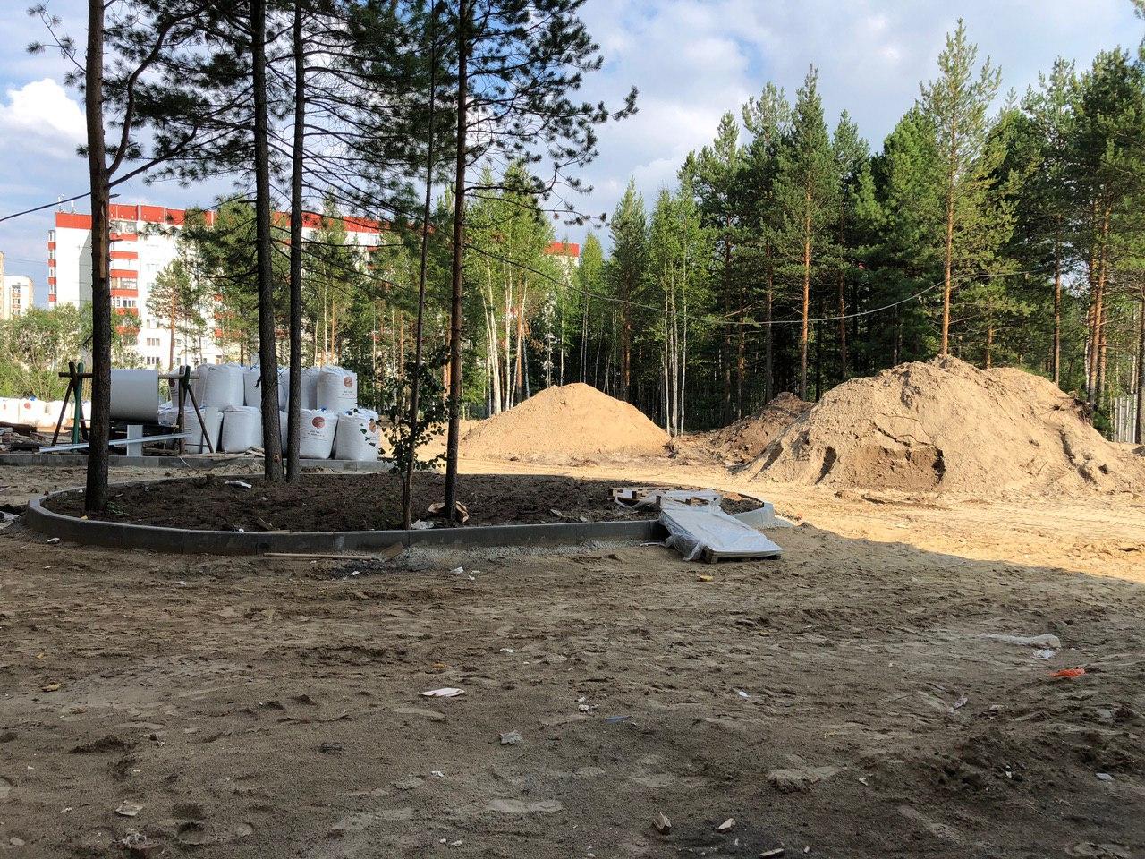 Ведутся работы по благоустройству территории, асфальтирование тротуаров.