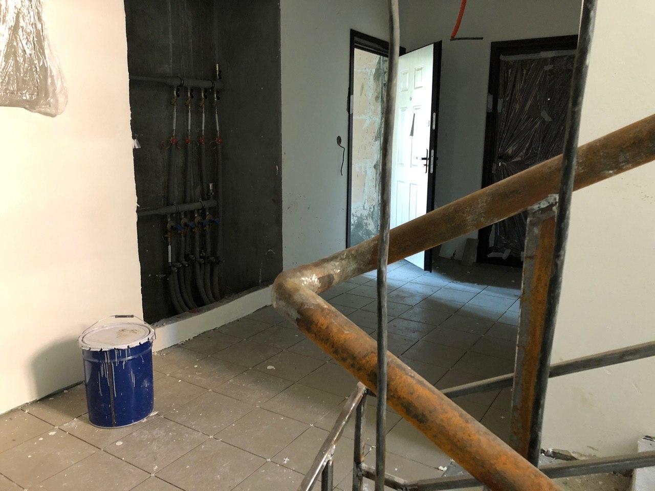 Ведутся внутренние чистовые отделочные работы. Во всех подъездах ведутся работы по укладке плитки в местах общего пользования, в 3-7 секциях производится шпатлевка, чистовая покраска мест общего пользования. На строительной площадке находится порядка 50 человек.