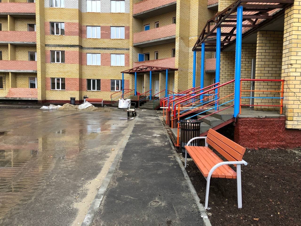 В 5 подъезде ведутся работы по монтажу лифтов, 1-3 этажи – отделка МОП, заливка сантехнических отверстий; установка плитки в МОП; в 6 подъезде сбор канализационных туб, сбор лифтов; в 7 подъезде проводятся работы по черновой штукатурке стен; 8 подъезде ведутся работы по монтажу труб отопления; монтаж электропроводки, общестроительные работы. Выполняются работы по благоустройству и установке детской и спортивной площадок.