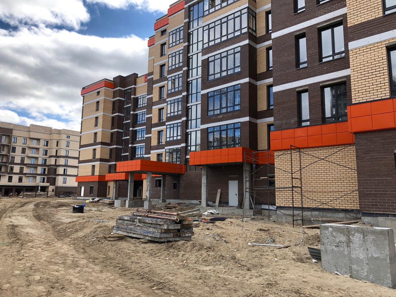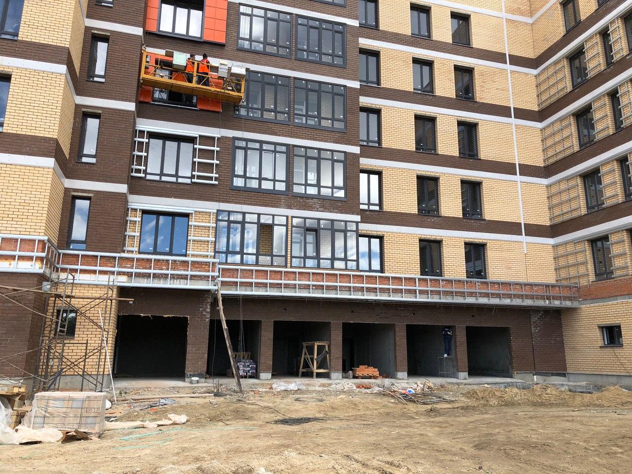 Строительство ведется в соответствии с утвержденным графиком СМР. Внутри помещений возведены перегородки, ведется работа по оштукатуриванию стен мест общего пользования, укладка плитки на пол в МОП первой, второй, третьей секции, установка дверей, покраска МОП первой, второй, третьей секции подготовка к благоустройству территории, монтаж внутреннего электроснабжения, монтаж внутреннего отопления. Завершаются работы по остеклению фасада. Ведутся работы по монтажу фасада.