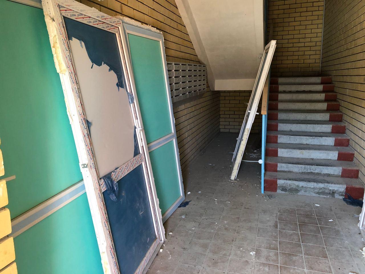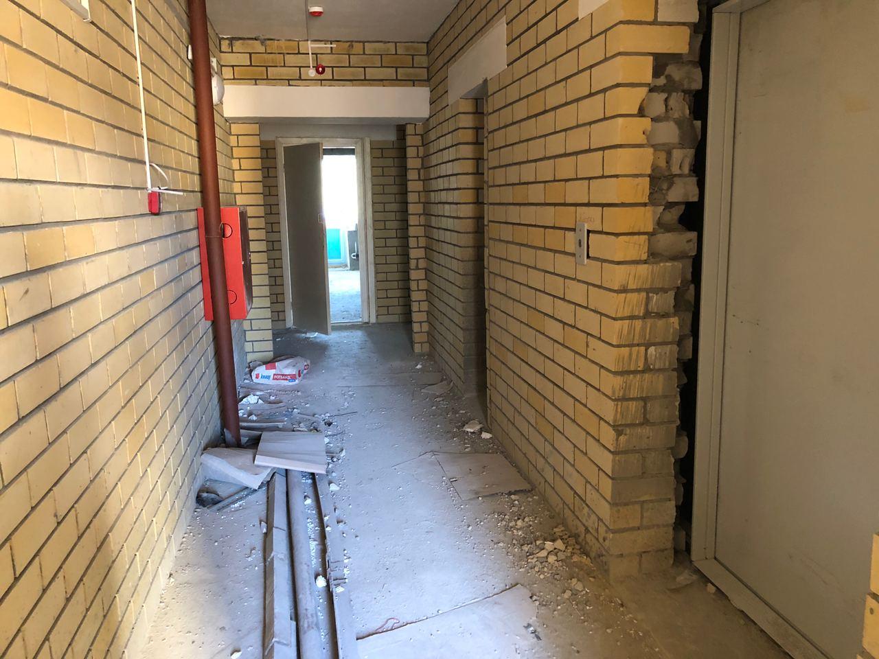 В первом подъезде работы не ведутся, дверь открыта. Произведены работы по подключению разводки отопления к радиаторам в квартирах с 1 по 8 этаж. Подключение выполнено к радиаторам, на входе в квартиру подключение выполнено не во всех квартирах. Производятся работы по отделке крыльца.