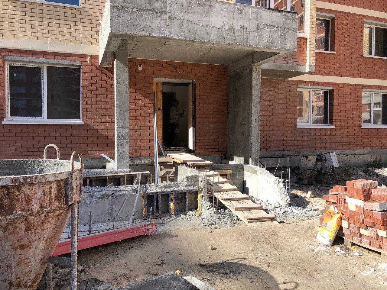 Ведутся работы по устройству входных групп в подъезды.