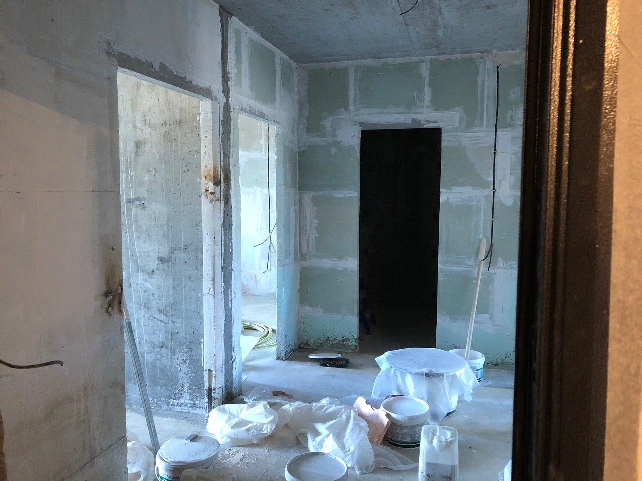 В 3-7 секциях производится шпатлевка, окраска мест общего пользования, установка входных дверей в квартиры. На строительной площадке находится порядка 30 человек.