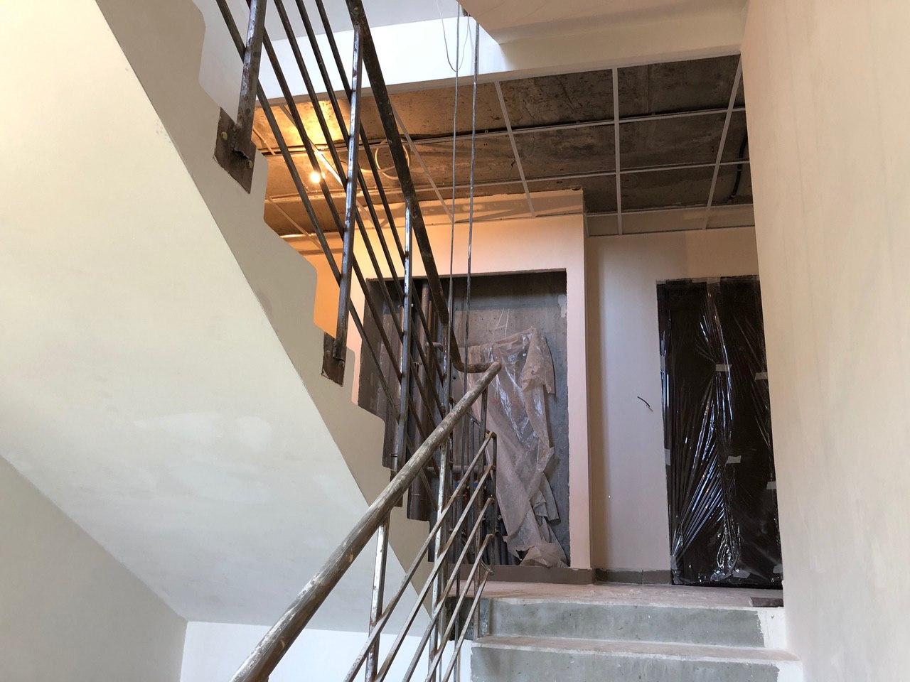 Ведутся чистовые отделочные работы мест общего пользования. В 1-2 секциях выполнены работы по укладке плитки в местах общего пользования, производится окраска лестничных пролетов, монтаж подвесных потолков, монтаж лифтового оборудования.
