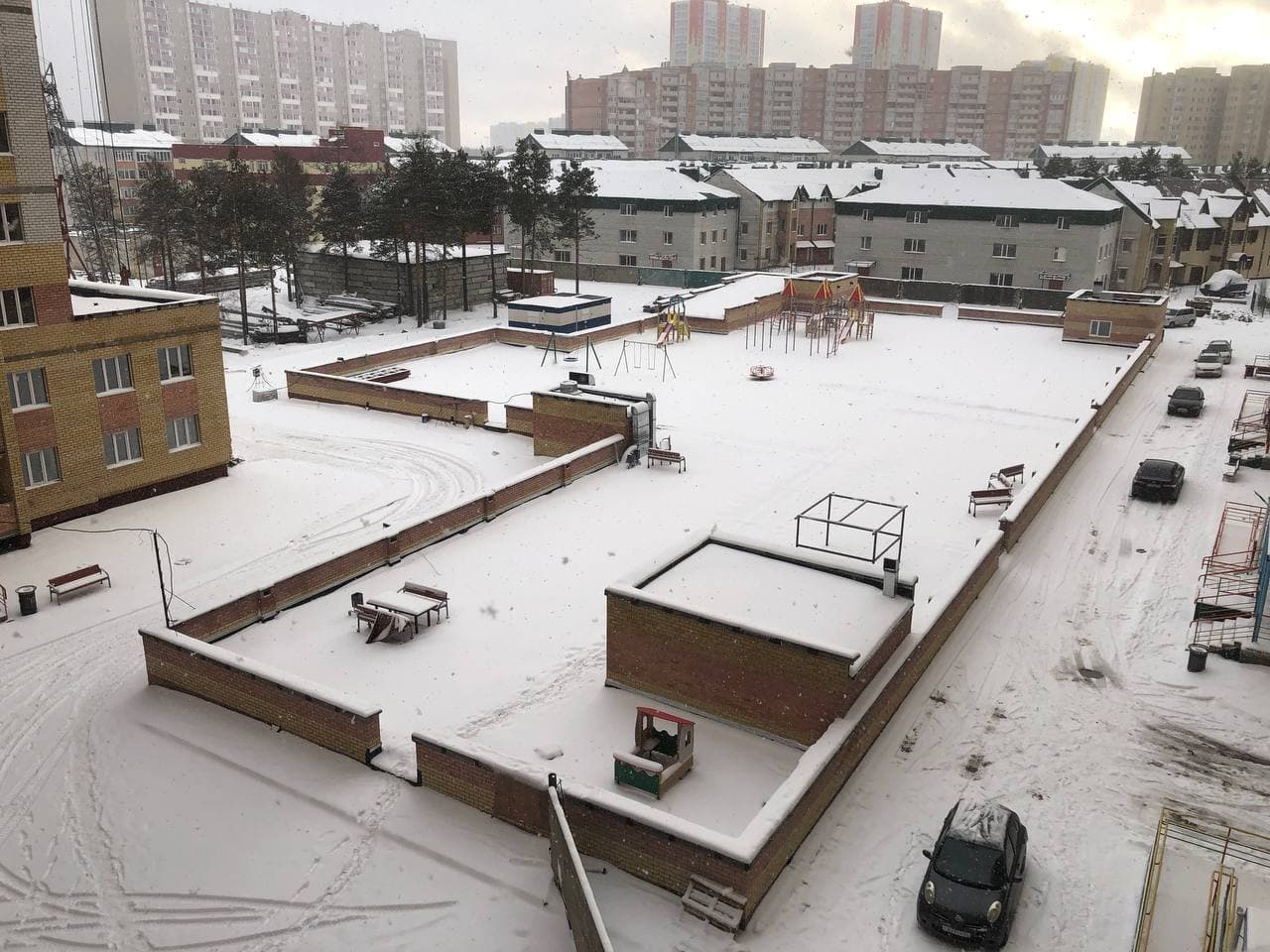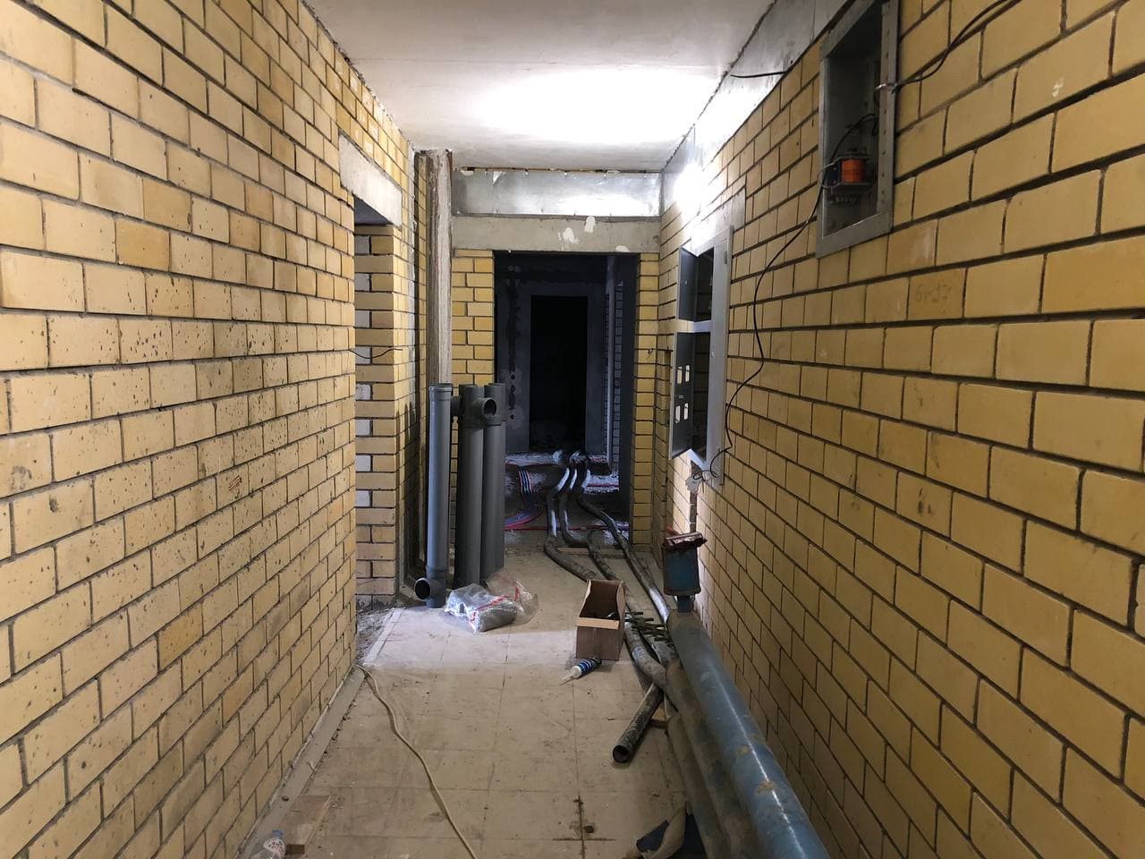 В 5-6 подъездах ведутся отделочные работы, укладка плитки в МОП, сборка кранов для подачи отопления, установка радиаторов отопления в квартирах, установка плафонов в МОП, монтаж лифта в 6 подъезде;