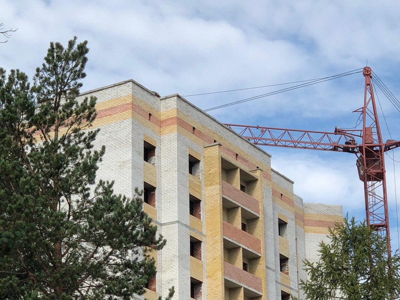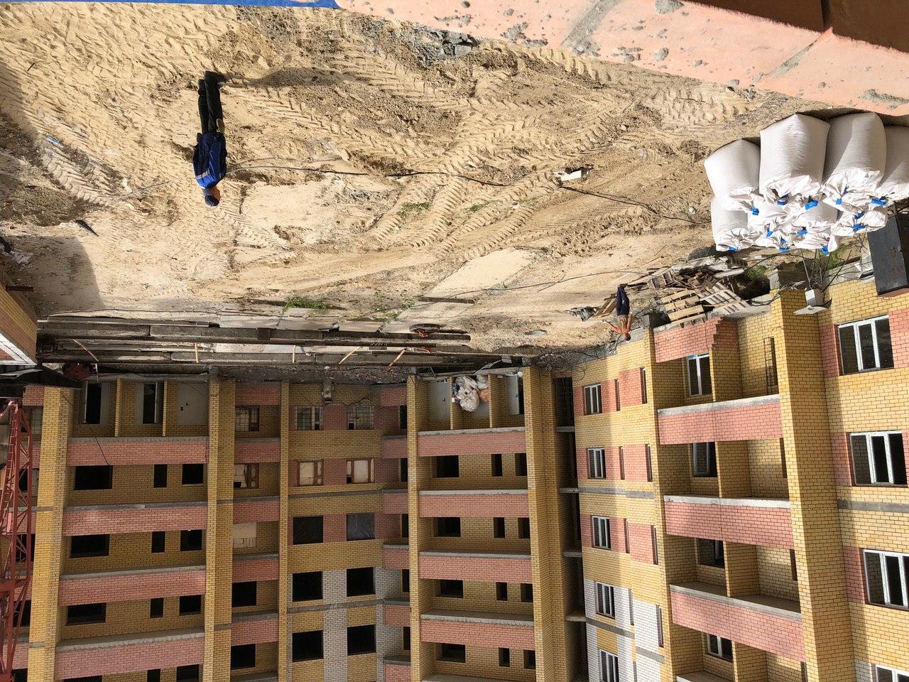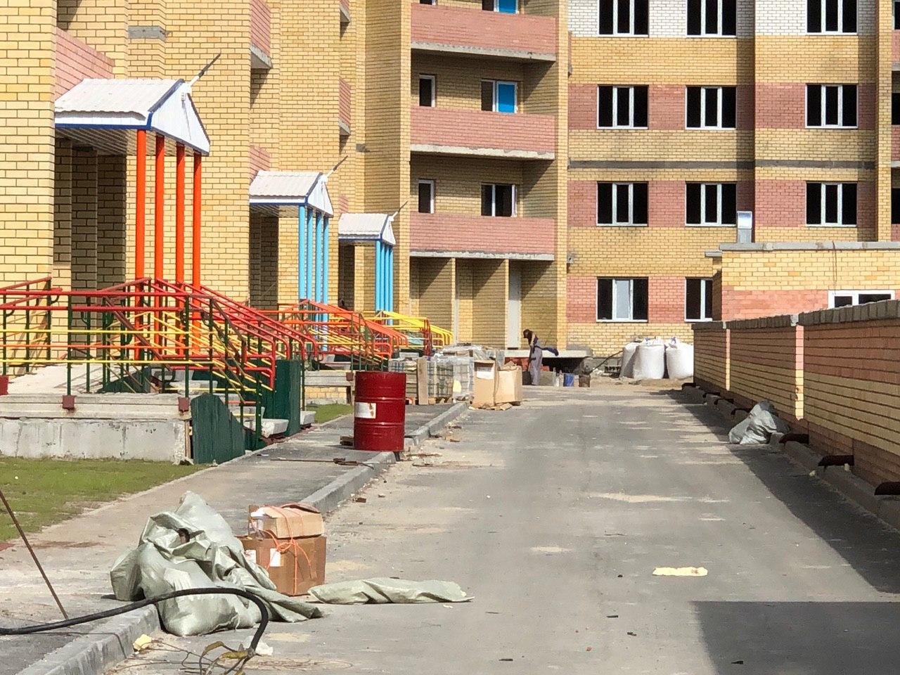 На строительной площадке первых четырех подъездов находятся 4 рабочих.