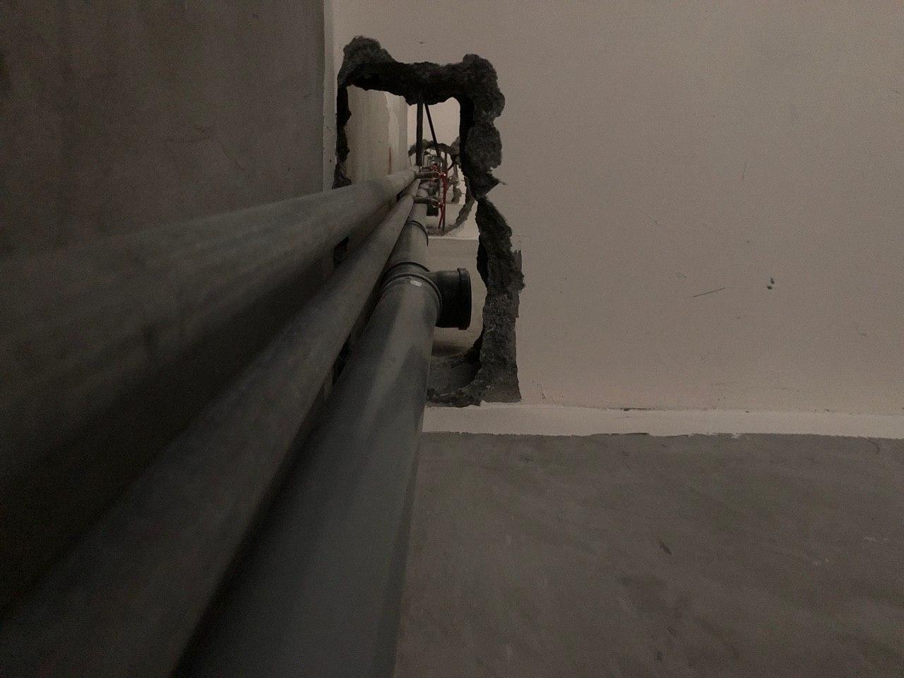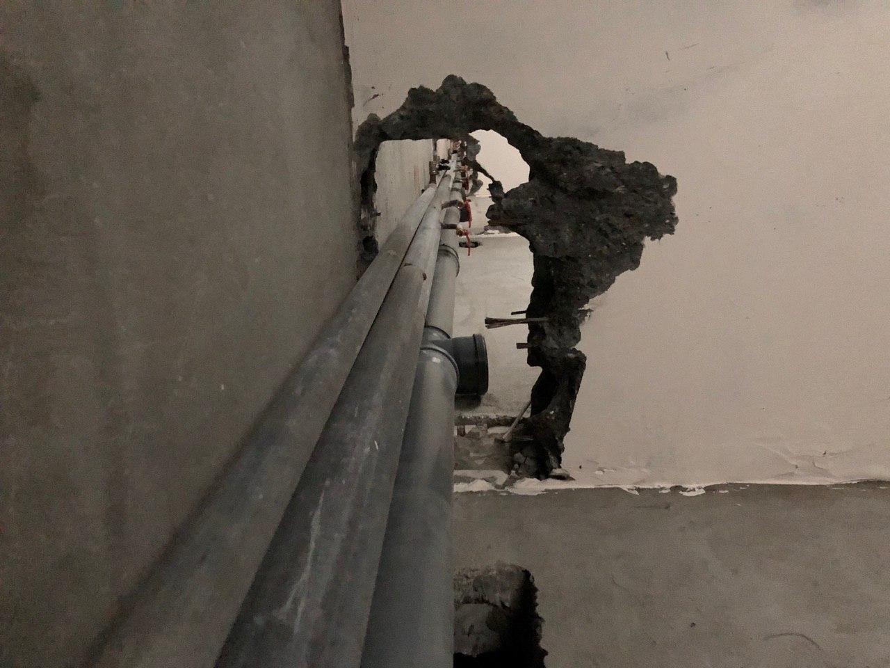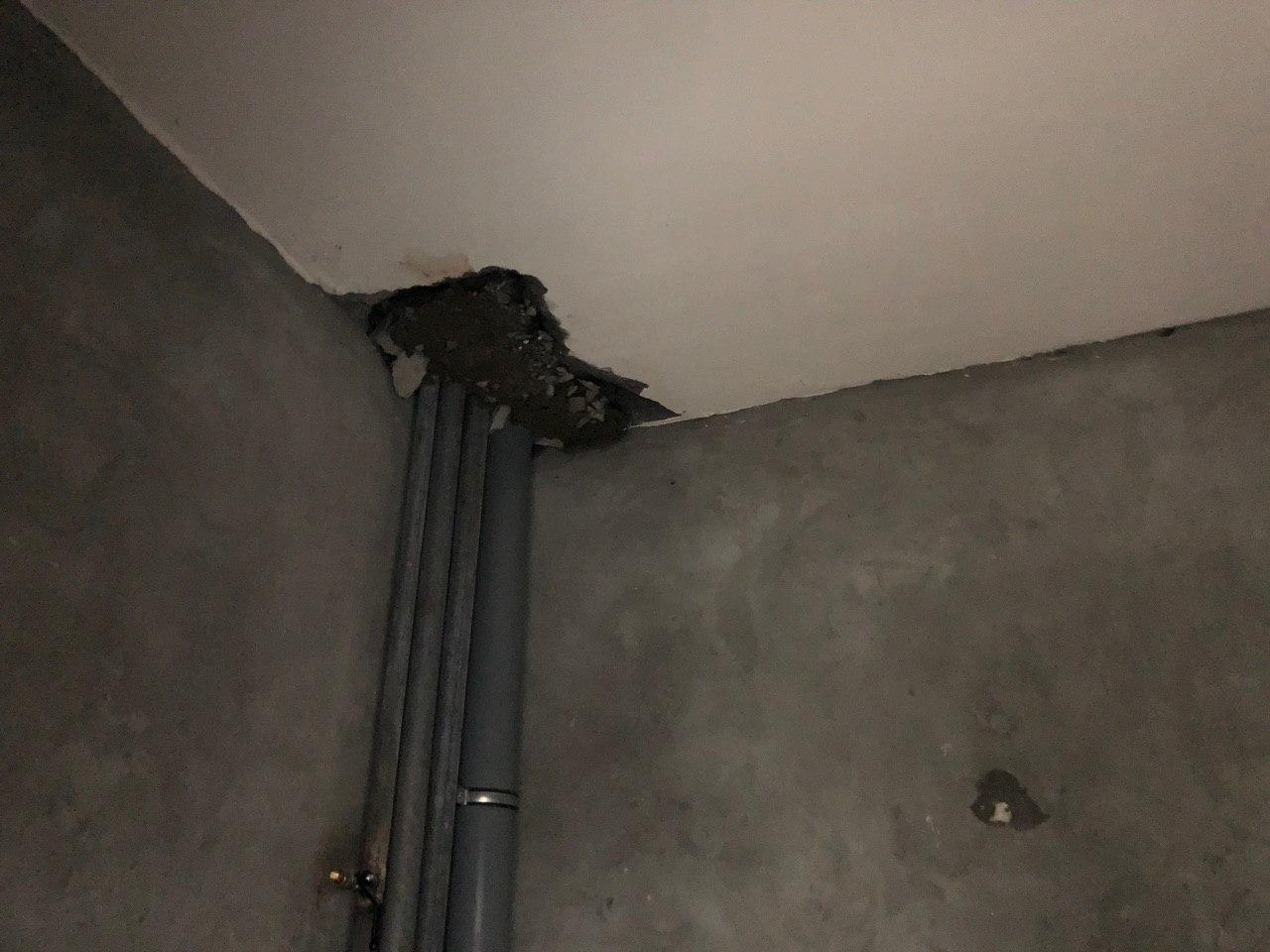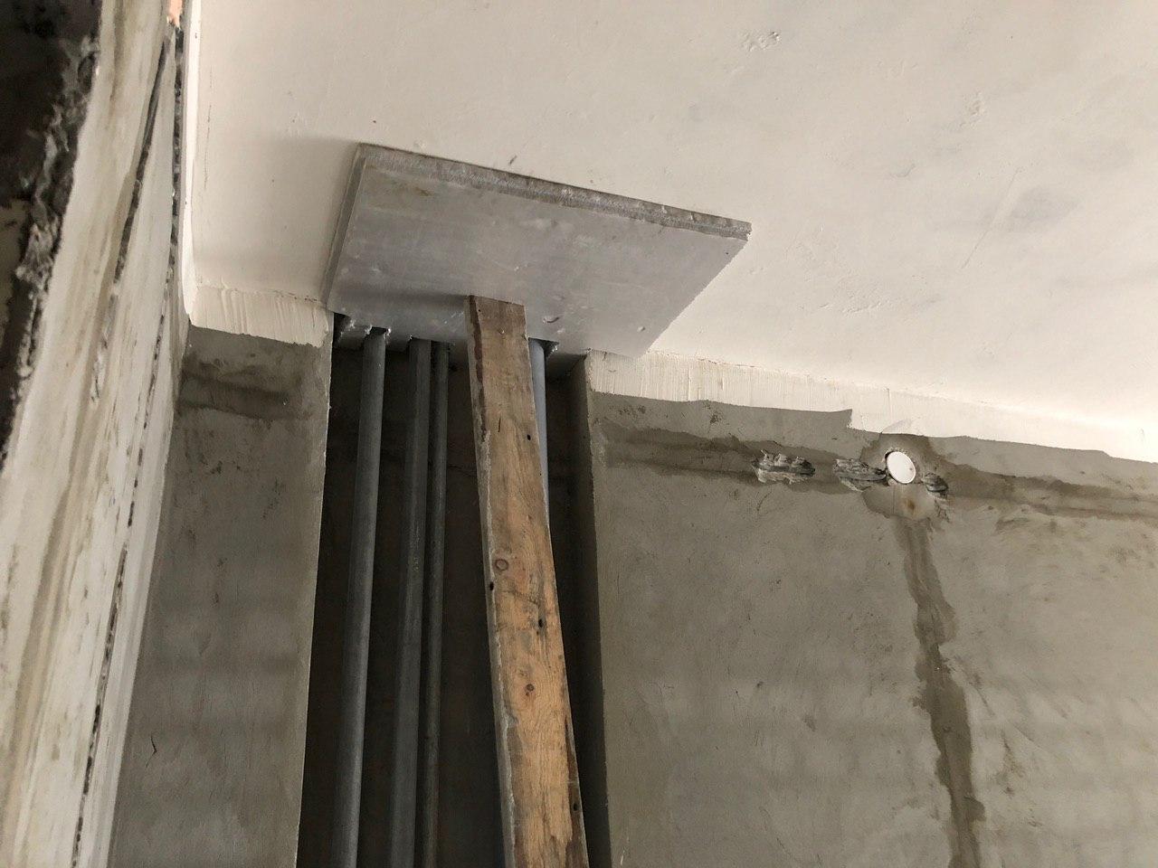 В третьем подъезде ведутся работы по заделке отверстий вокруг стояков водоснабжения и канализации в квартирах в перекрытии второго этажа силами 2 рабочих.