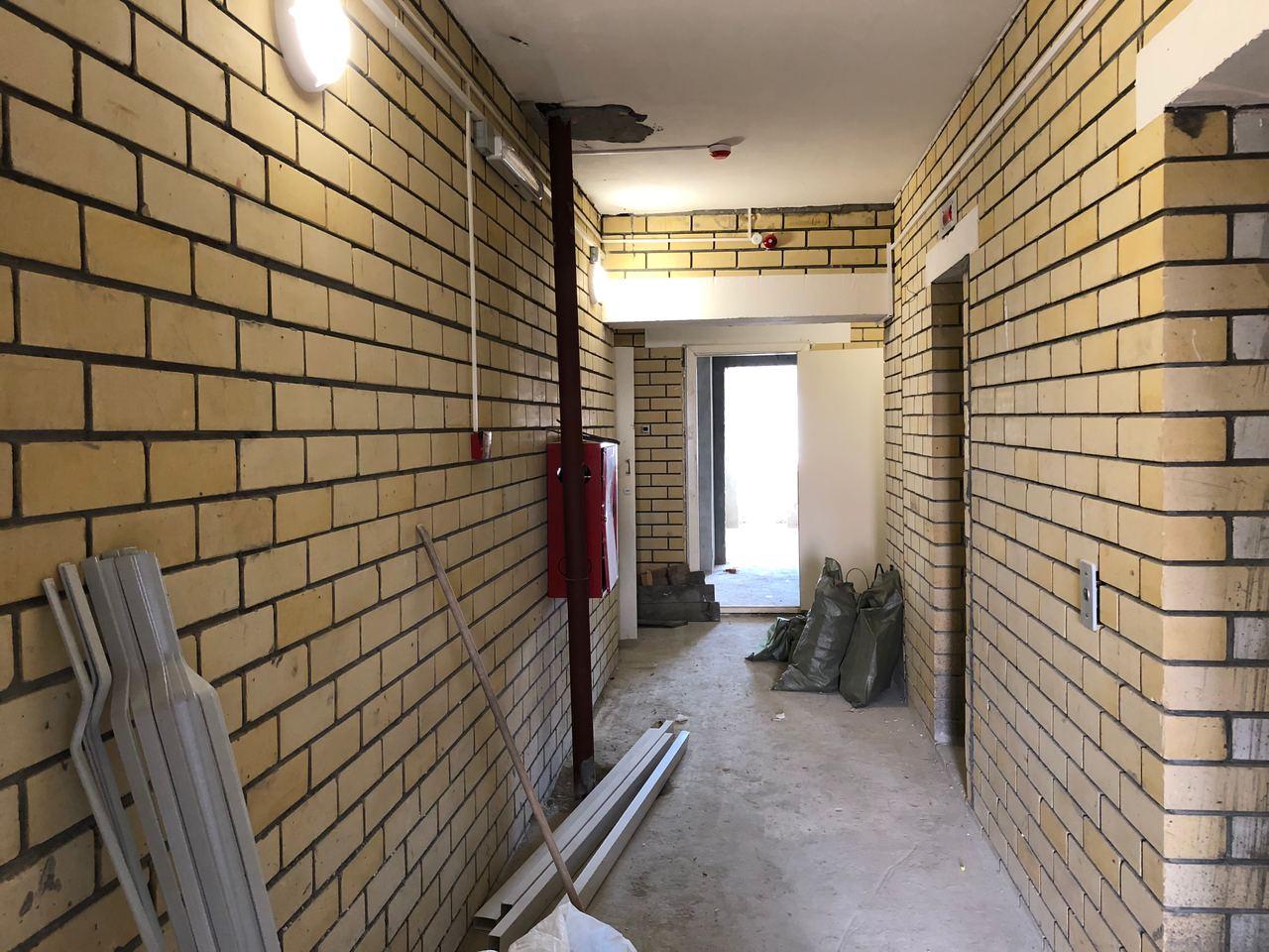 Во втором подъезде работы не ведутся, двери открыты.