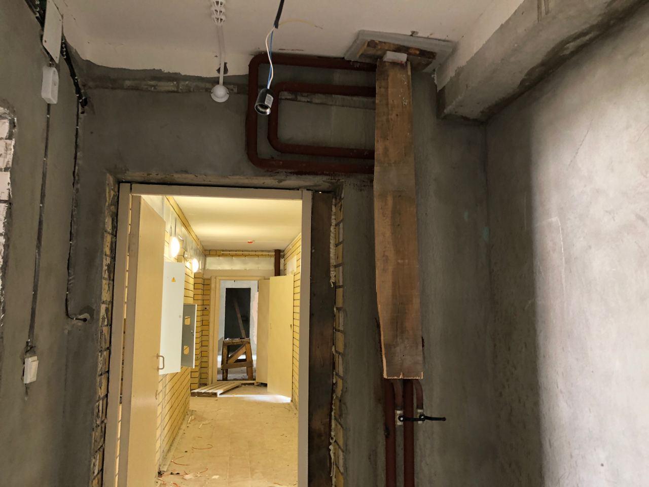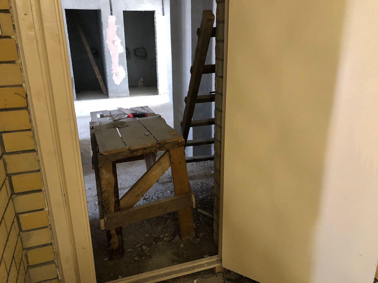 В первом подъезде работы не ведутся, дверь открыта.