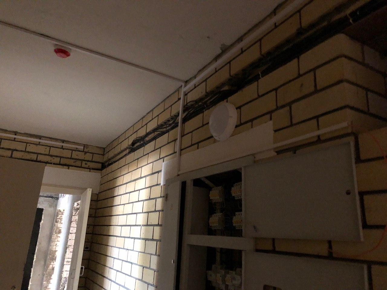 В первом подъезде устраняются замечания по электрике силами 2 электриков на 3 этаже.