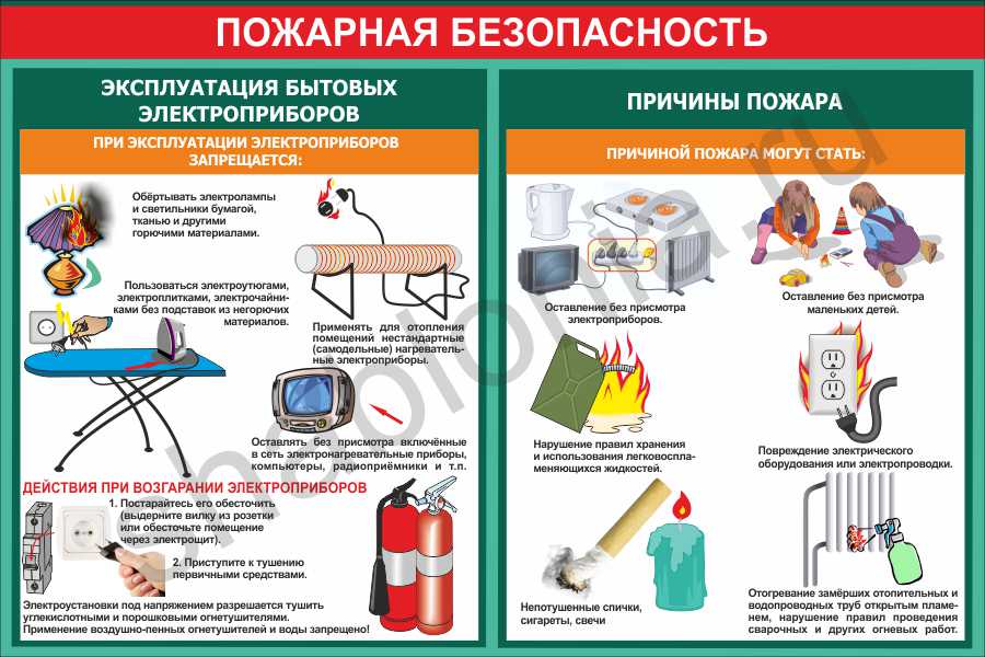 Утюги, электроплитки, электрочайники и другие нагревательные приборы устанавливайте на несгораемые подставки и размещайте их на безопасном расстоянии от мебели, ковров, штор и других сгораемых материалов.