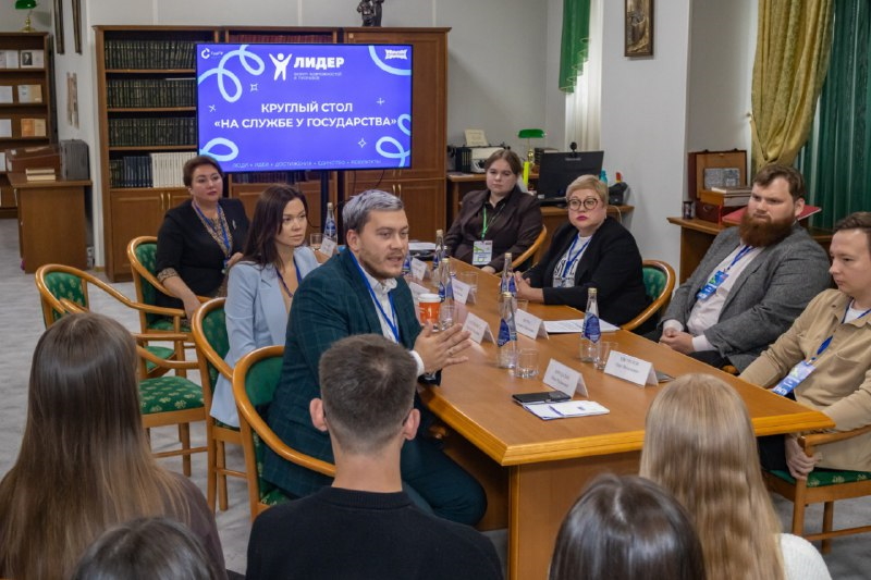 Вместе с ней на круглом столе «На службе у государства» приняли участие Заместитель Главы города Виталий Малыхин, директор Департамента образования Ирина Замятина, специалисты-эксперты из Администрации Сургута Виктория Бруслиновская и Марк Бородатый. Также к дискуссии присоединились заведующий центром поддержки молодежных движений Олег Евстратов и начальник отдела архивных документов Иван Решетников. Участники мероприятия поделились своим профессиональным опытом, кратко осветили этапы своей трудовой деятельности.