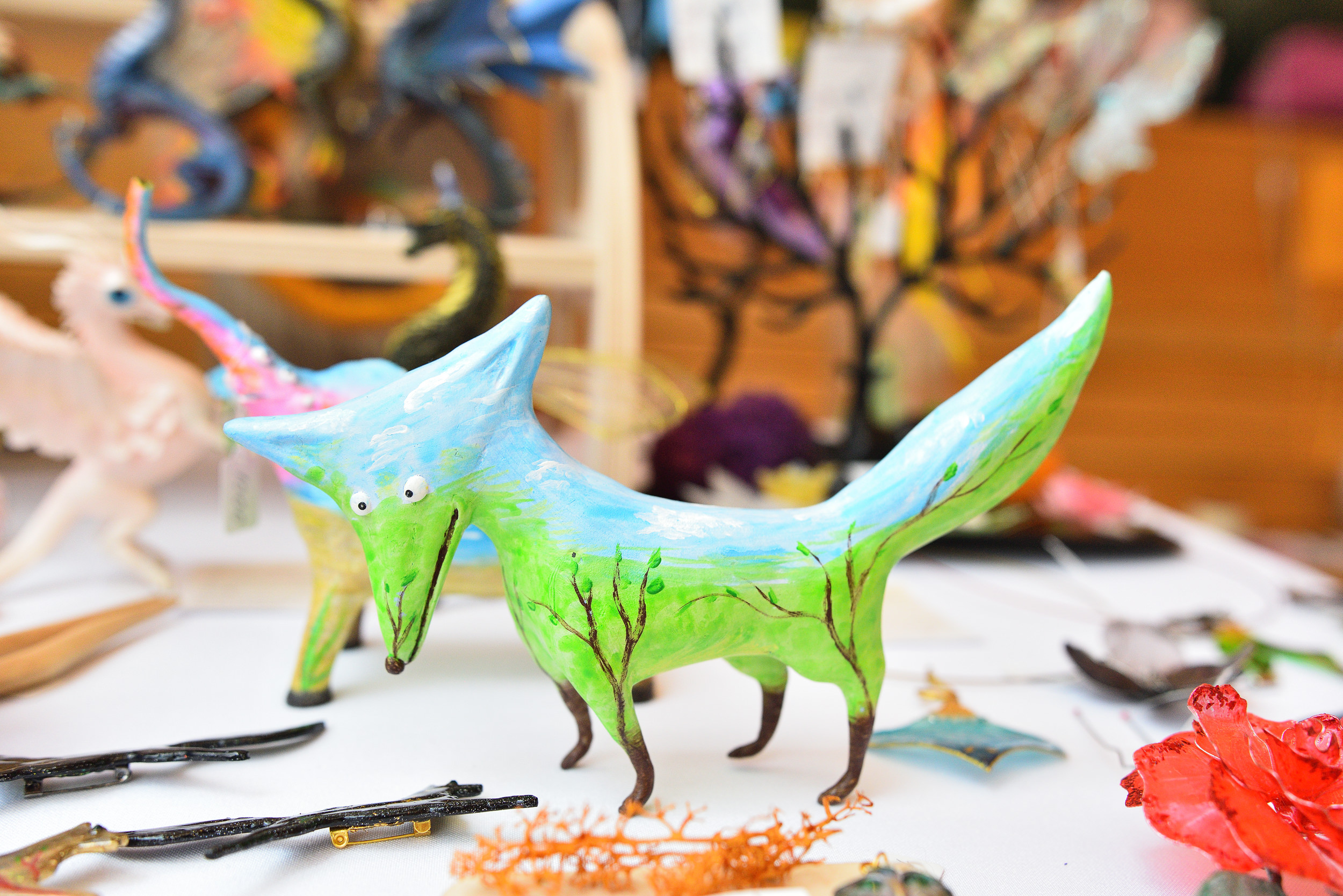 Мастера-ремесленники представили изделия ручной работы – кованые сувенирные изделия, вязаные игрушки, украшения из стекла, деревянный декор для дома и многое другое.