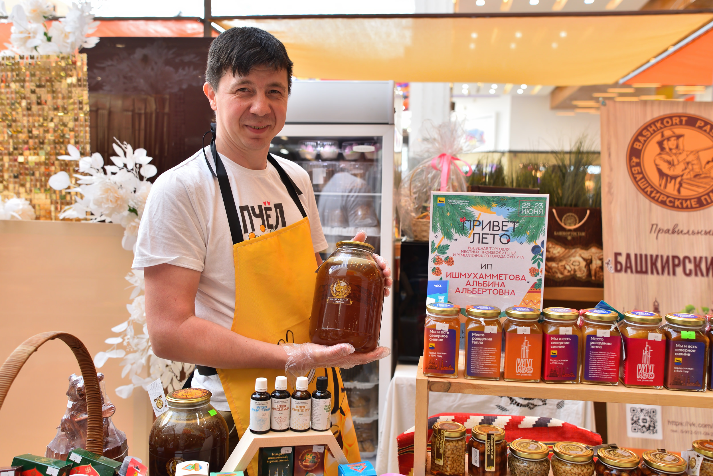 Организатором мероприятия выступила Администрация города Сургута. Производители продуктов питания, сувенирных изделий – более тридцати предпринимателей – представили свою продукцию: мясные, кондитерские изделия, растительные масла, микрозелень, мёд, сладости, сувениры, текстиль, украшения, товары ручной работы.