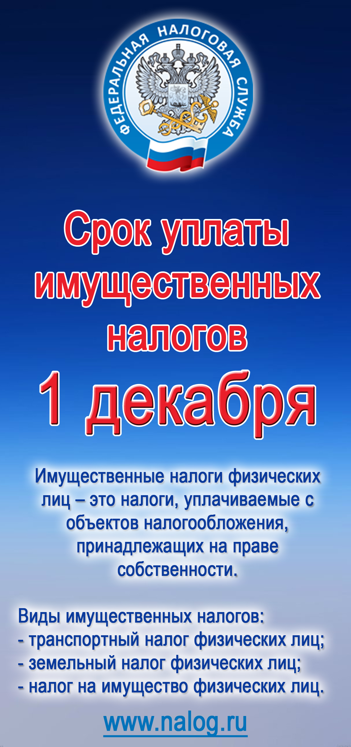 19 августа 2019 Срок уплаты имущественных налогов 1 декабря