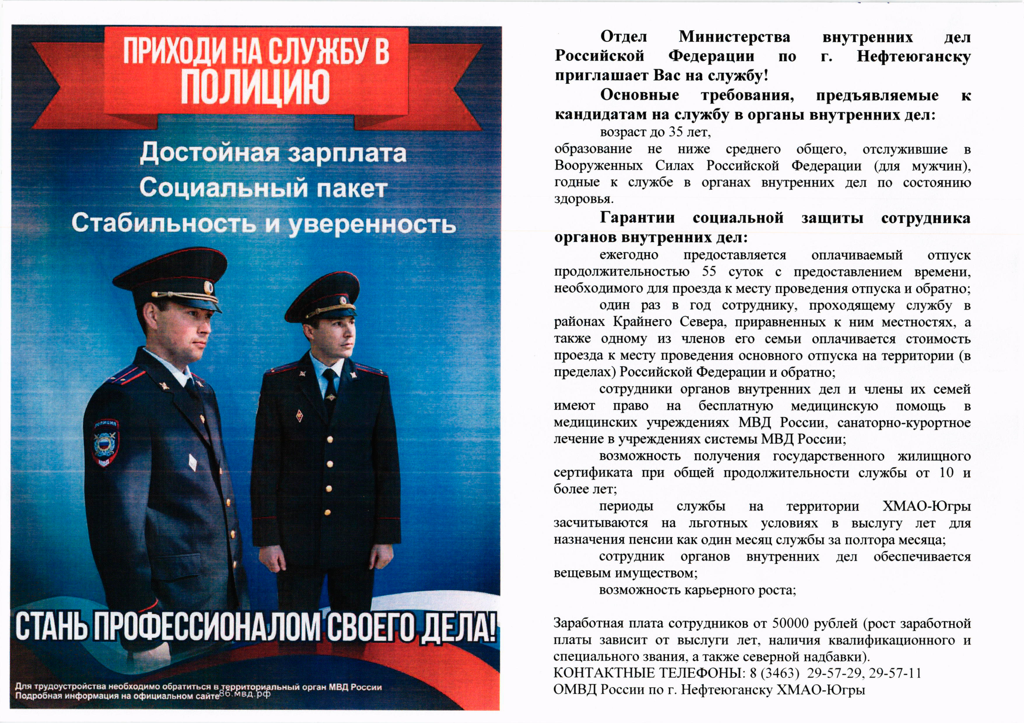 27 декабря 2018 ОМВД РФ приглашает на службу