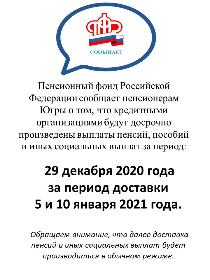 16 декабря 2020 Досрочная выплата пенсий
