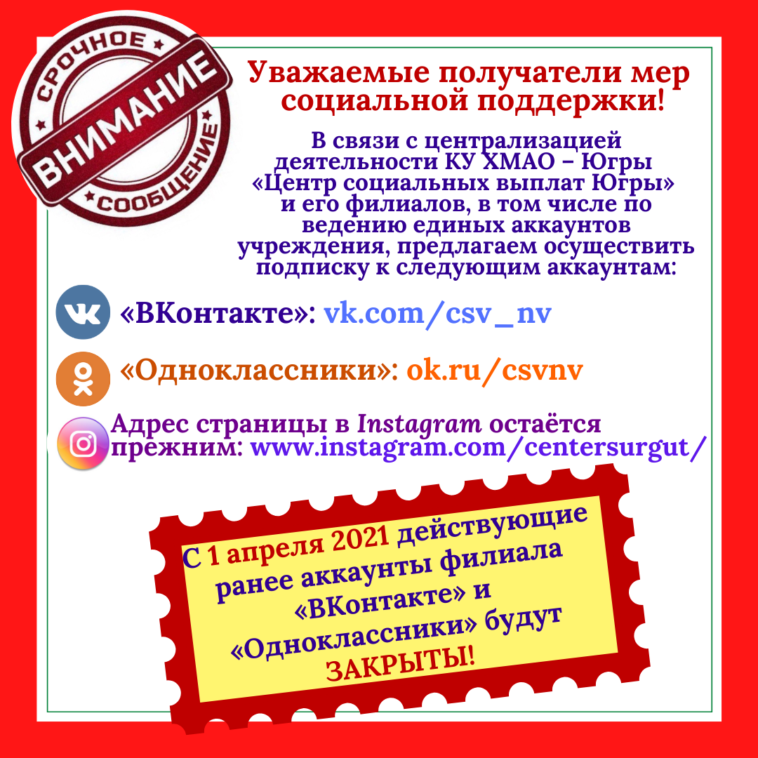 03 марта 2021 К сведению получателей мер социальной поддержки (Объединение аккаунтов КУ «Центр социальных выплат)