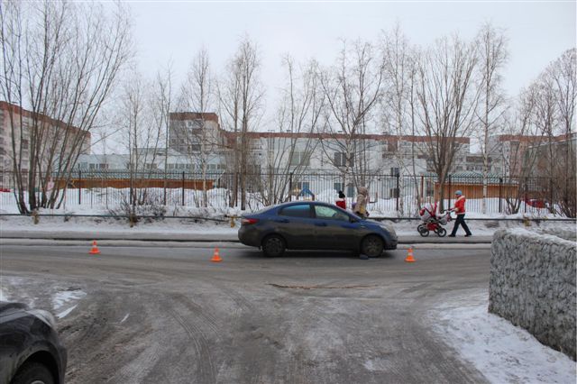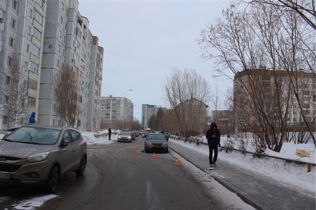 23.03.2015 года в 17 часов 10 минут в г. Сургуте в жилой зоне напротив дома 9 проезда Первопроходцев водитель 1970 г.р., управляя а/м Kia Rio, допустил наезд на малолетнего пешехода 2003 г.р., выбежавшего на проезжую часть дворового проезда из-за стоящего т/с, ограничивающего видимость, в непосредственной близости перед движущимся т/с, справа налево по ходу движения т/с. В результате дорожно-транспортного происшествия а/м получила механические повреждения, малолетний пешеход получил телесные повреждения и на а/м СМП был доставлен в БУ «СКТБ».