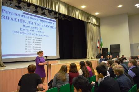 На мероприятии присутствовали приглашенные представители правовых государственных структур от УМВД и ОГИБДД Сургута и Прокуратуры. Вначале мероприятия организаторы круглого стола – педагоги СПК, выступили перед присутствующими с приветственным словом, и показали результаты правового анкетирования, сделанного накануне среди студентов. Итоги анкетирования показали, что только 50 % от общего количества студентов осведомлены в правовой направленности, что определило актуальность организации круглого стола на данную тематику.