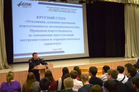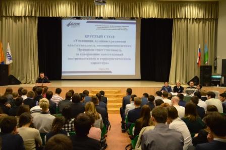 Накануне в Сургутском политехническом колледже состоялся круглый стол с представителями правоохранительных органов и студентами первых курсов. Мероприятие прошло в рамках проведения правового воспитания молодёжи.