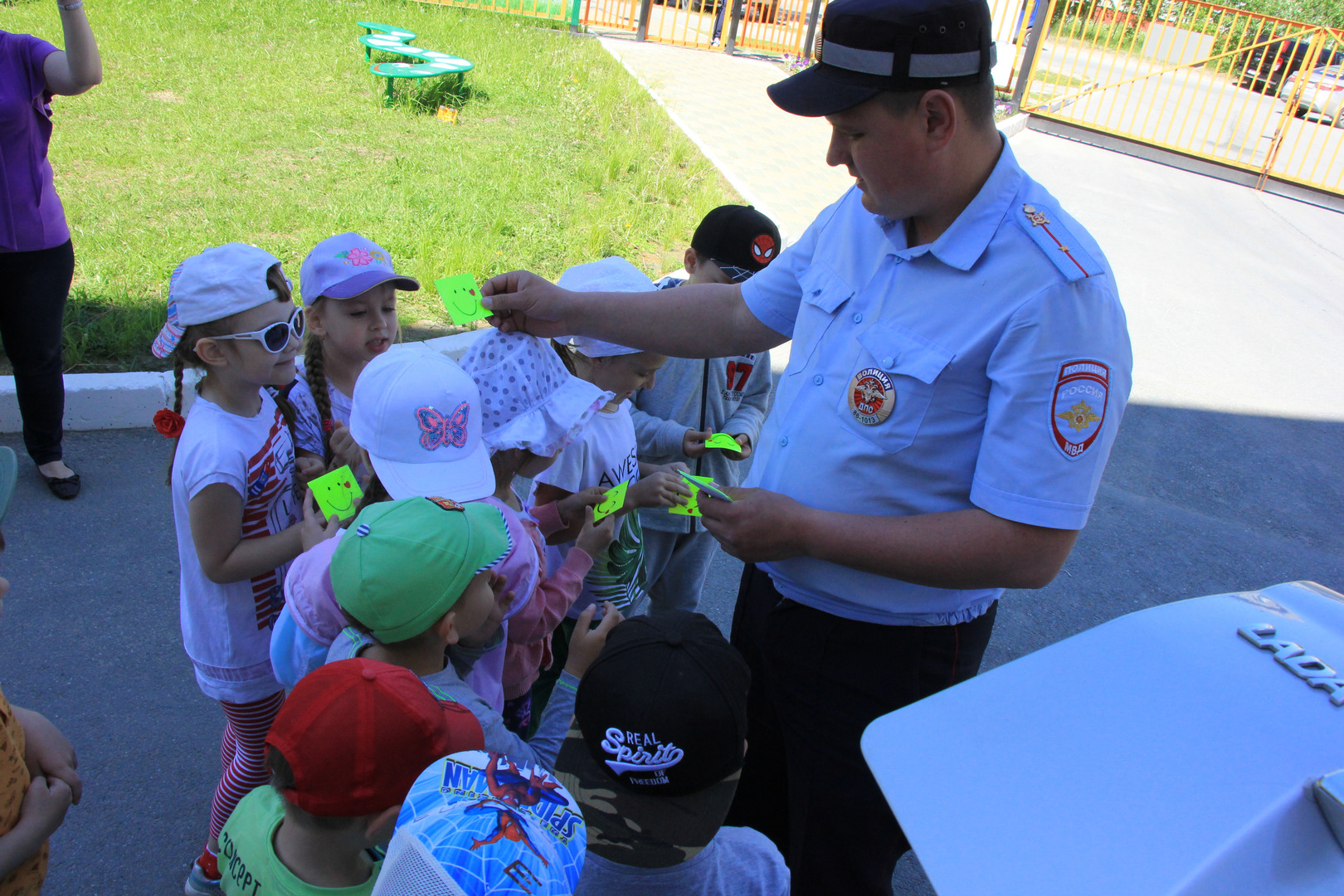 Дошколята очень любят, когда к ним приезжают сотрудники Госавтоинспекции. Для них это всегда праздник. Особый восторг у детей вызывает патрульный автомобиль, когда он рядом, когда в нем можно посидеть и призвать жителей к соблюдению Правил дорожного движения, что и сделали юные помощники ГИБДД.