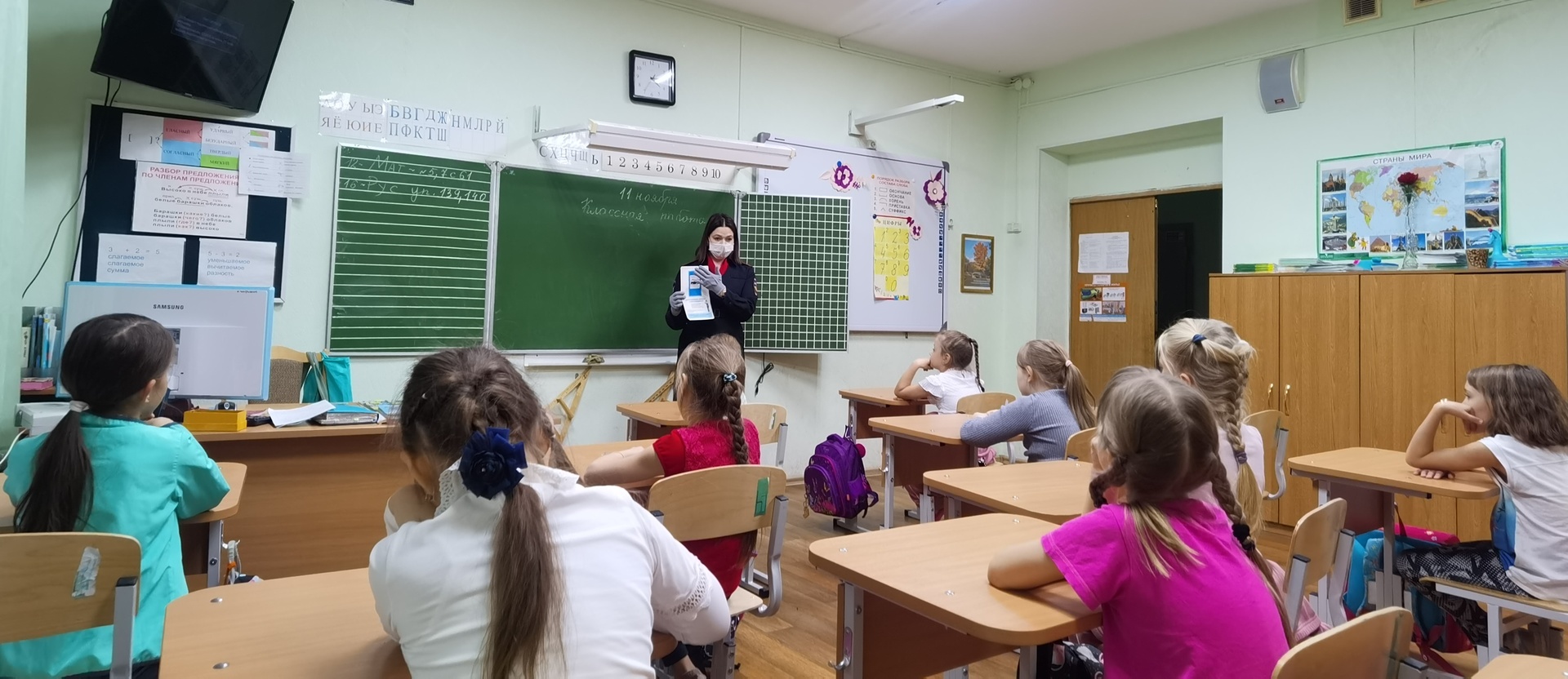 В Колледже Русской Культуры имени А.С. Знаменского автоинспекторы провели урок «Азбука безопасности» для учеников 2 класса. Юные музыканты с интересом и активно приняли участие в мини-викторине по правилам дорожного движения, отвечали на тематические вопросы о дорожной безопасности, и рассказывали о безопасном маршруте школьника.
