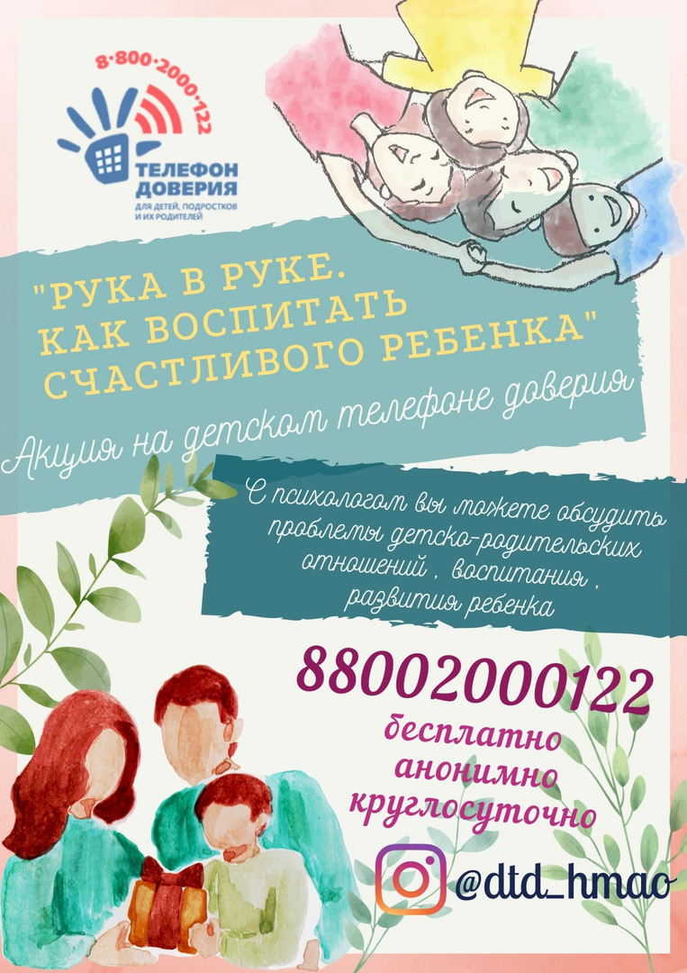 с 01 по 30 сентября 2020 года детский телефон доверия с единым общероссийским номером 8-800-2000-122 проводит акцию «Рука в руке. Как воспитать счастливого ребенка».