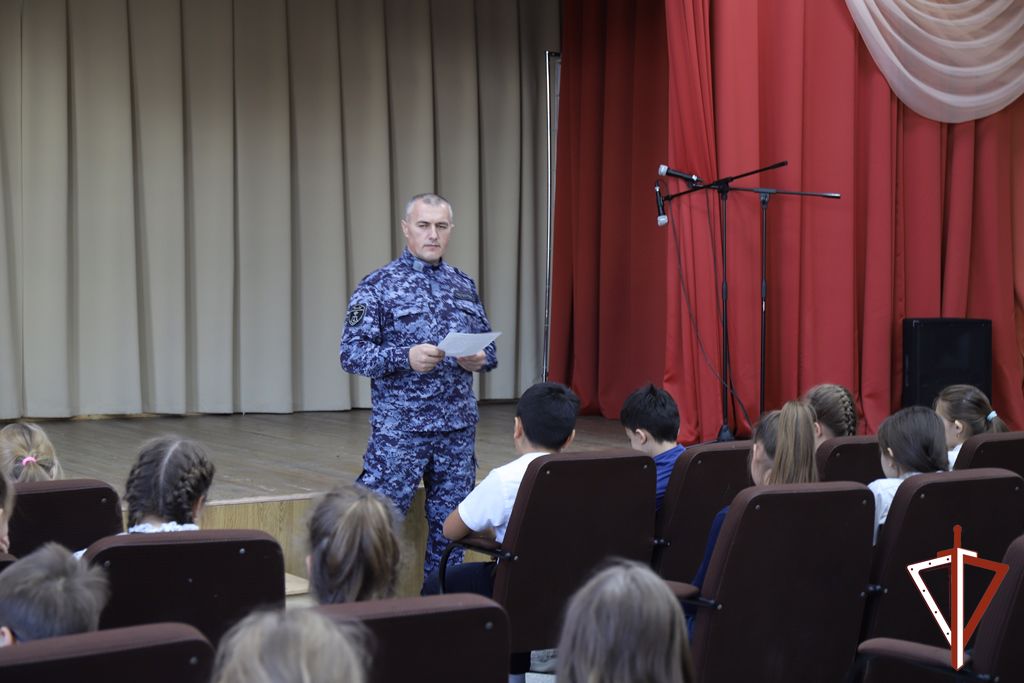 В рамках Всероссийской историко-патриотической акции «Росгвардия. Страницы победы: Сталинград», посвящённой 80-летию победы в Сталинградской битве командир взвода Ханты-Мансийского отдела вневедомственной охраны Управления Росгвардии по ХМАО – Югре капитан полиции Рустам Ризаев провел открытый урок для школьников средней общеобразовательной школы № 3.