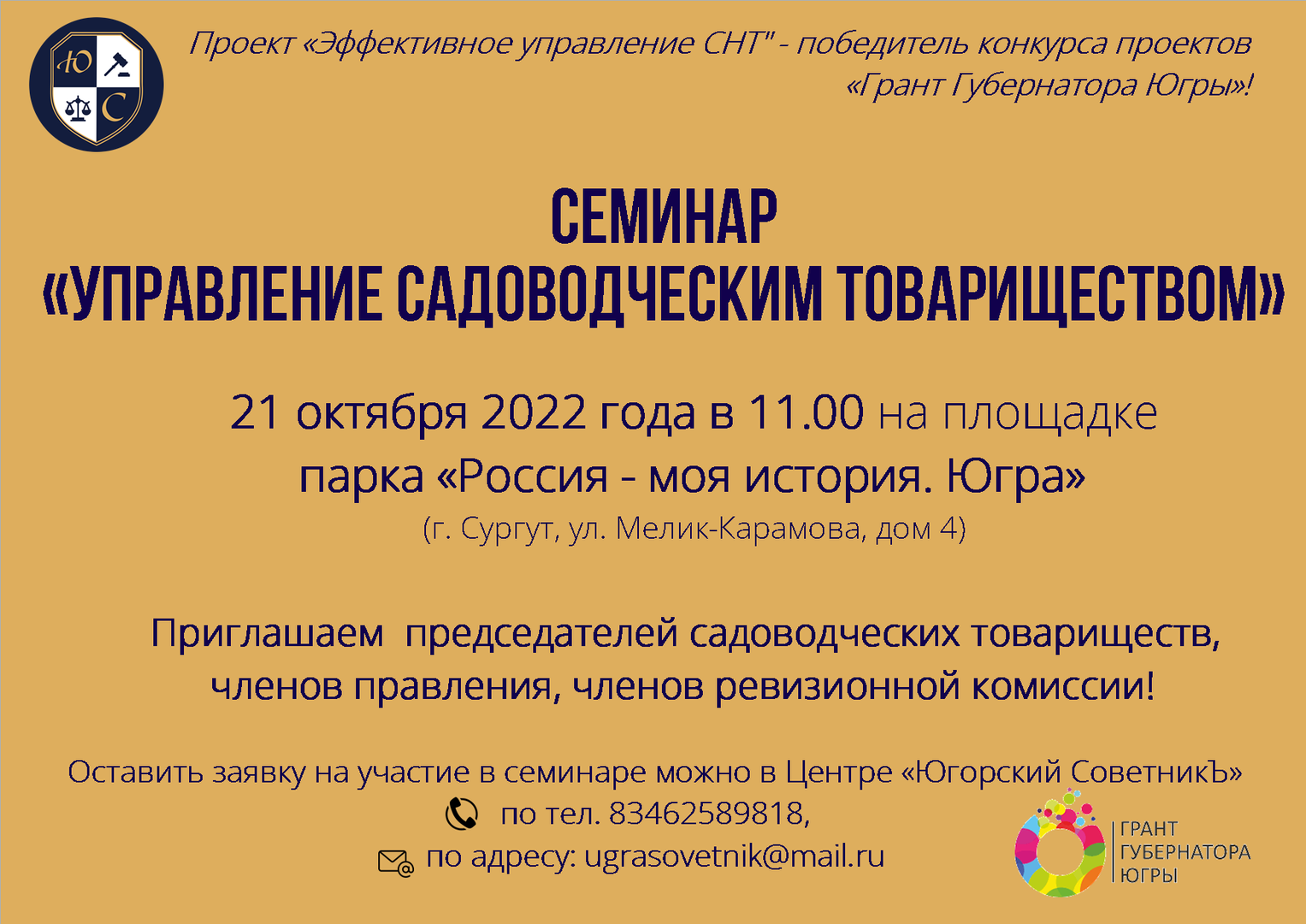 Семинар пройдет в рамках программы «Эффективное управление СНТ» - победителя конкурса проектов Гранта губернатора Югры.
