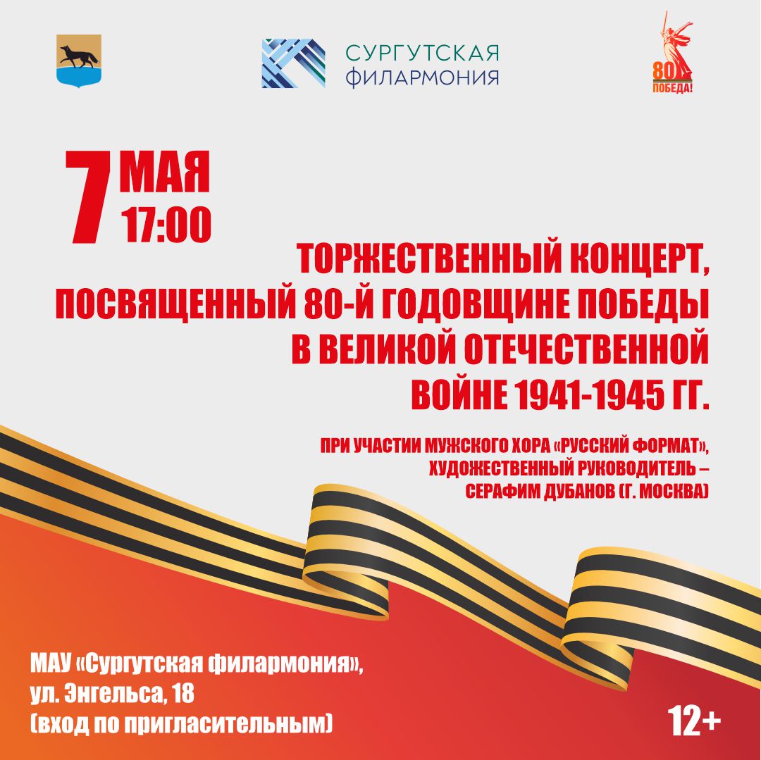 7 мая в Центре патриотического наследия состоится акция памяти «Сургут. Весна 1945 года»: Сургутский краеведческий музей представит реконструкцию торжественного митинга 9 мая 1945 г. в селе Сургут. В этот же день в Сургутской филармонии пройдет концерт, посвященный 80-й годовщине Победы в Великой Отечественной войне. 8 мая состоится традиционная легкоатлетическая эстафета. Праздничные мероприятия, посвященные Дню Победы, продолжатся в Сургуте до конца месяца.